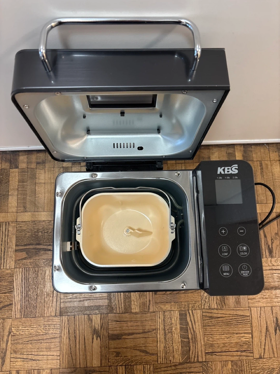 This KBS automatic bread maker has 17 category functions, including options for soft bread, whole wheat, It comes with a measuring cup, spoon, and hook for bread removal. It also includes a quick start guide and recipe book. This machine's compact size makes it convenient for any kitchen counter.