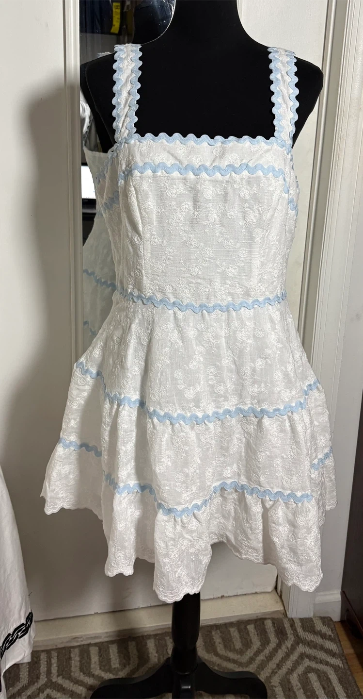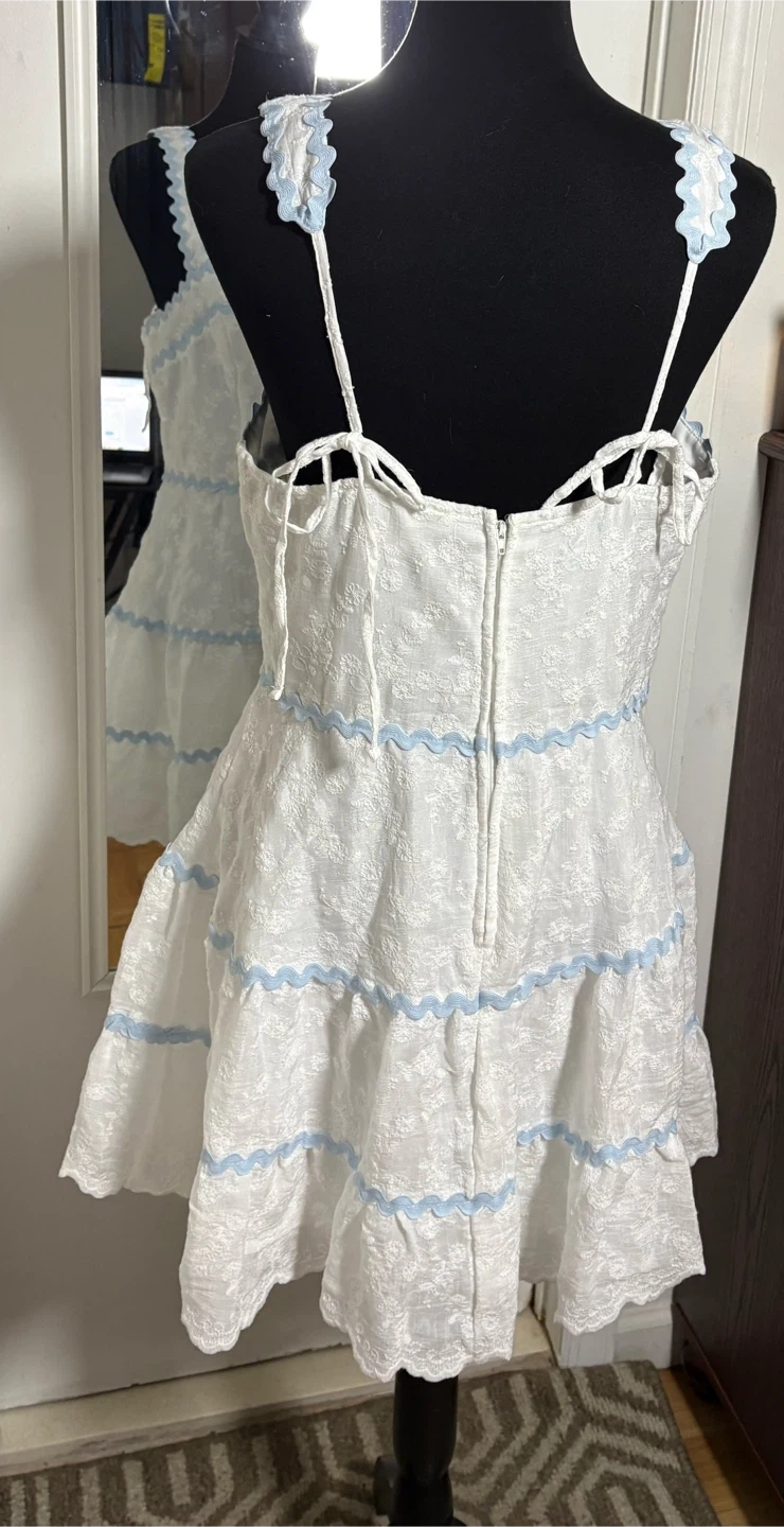 Altar'd State White & Blue Lace Trim Mini Dress XL