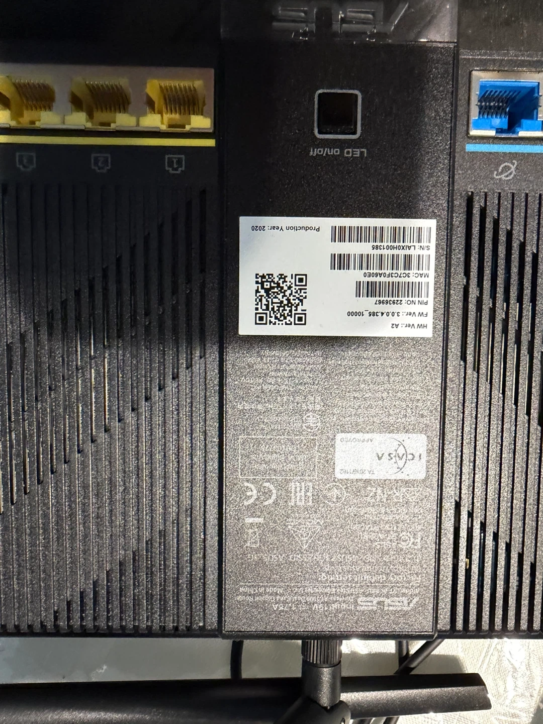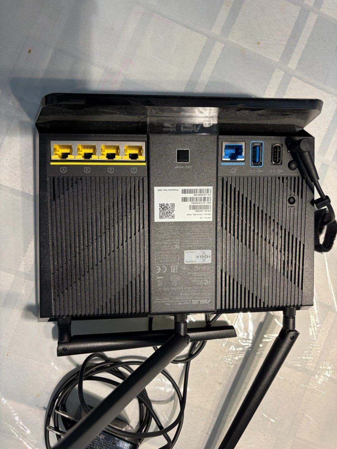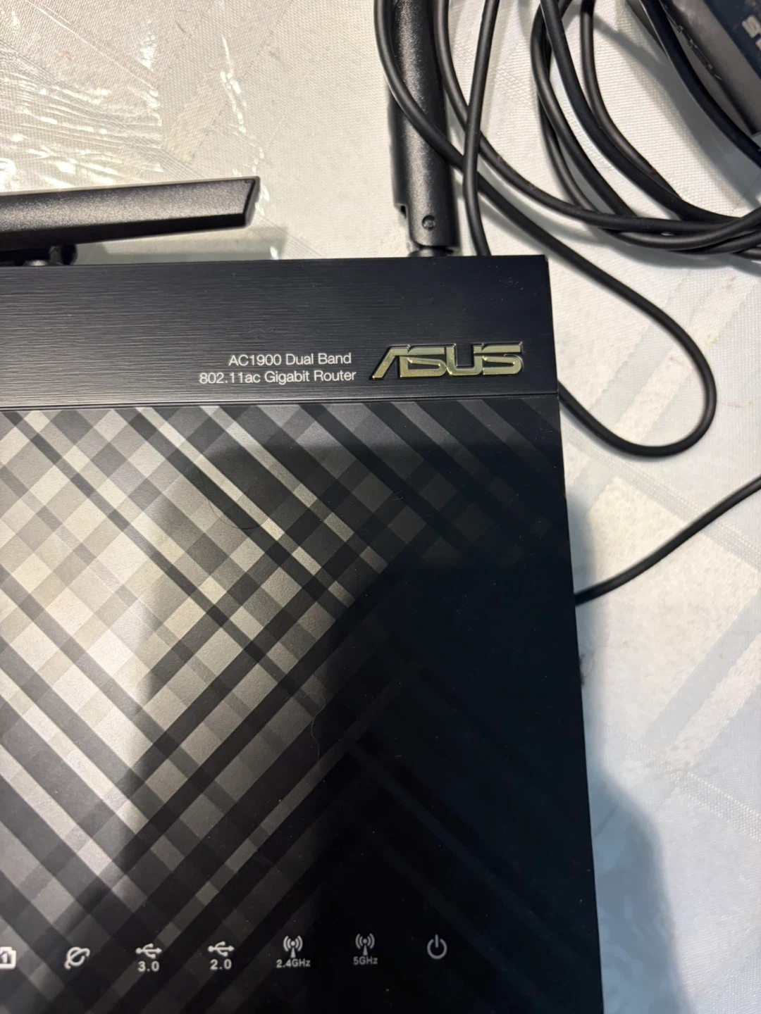 Selling an ASUS AC1900 Dual Band 802.11ac Gigabit Router. It comes with the power adapter. Production year is 2020, so it's still in great working condition!