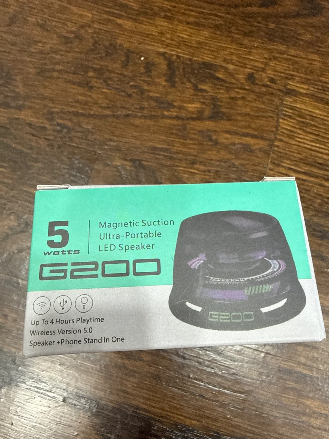 This is a G200 magnetic suction ultra-portable LED speaker. It offers up to 4 hours of playtime with wireless version 5.0. It also functions as a speaker and phone stand in one!
