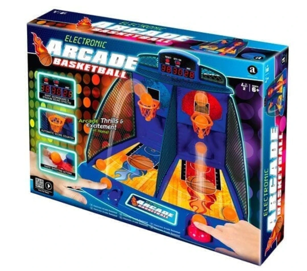 Bring the arcade experience home with this electronic basketball game. It features automatic scorekeeping and stadium sound effects for an exciting play. Recommended for ages 6 and up.