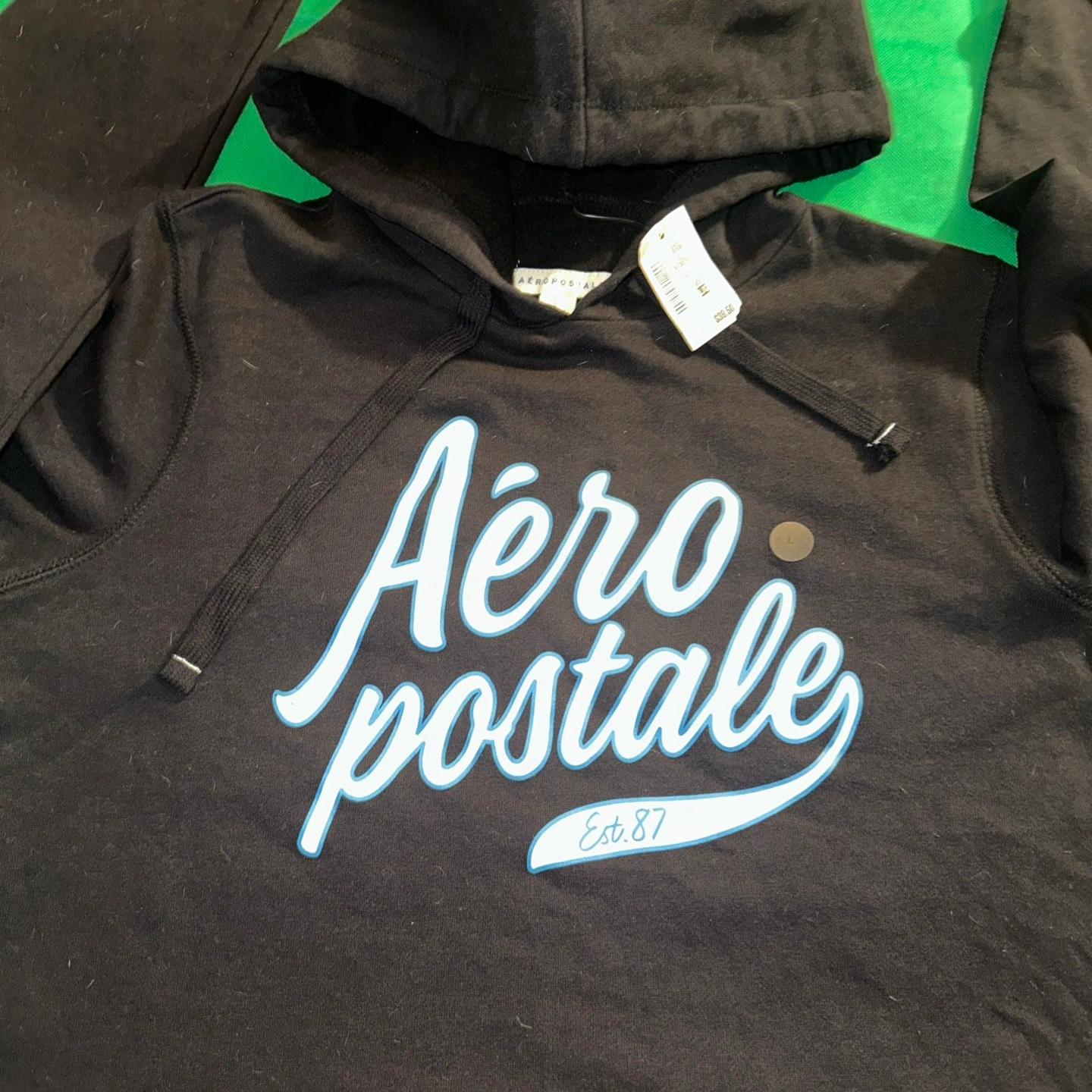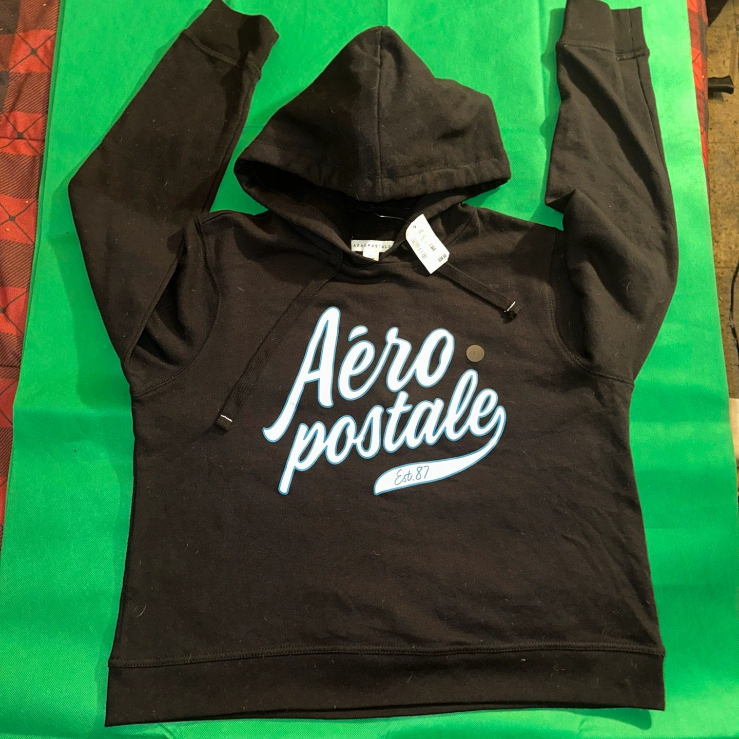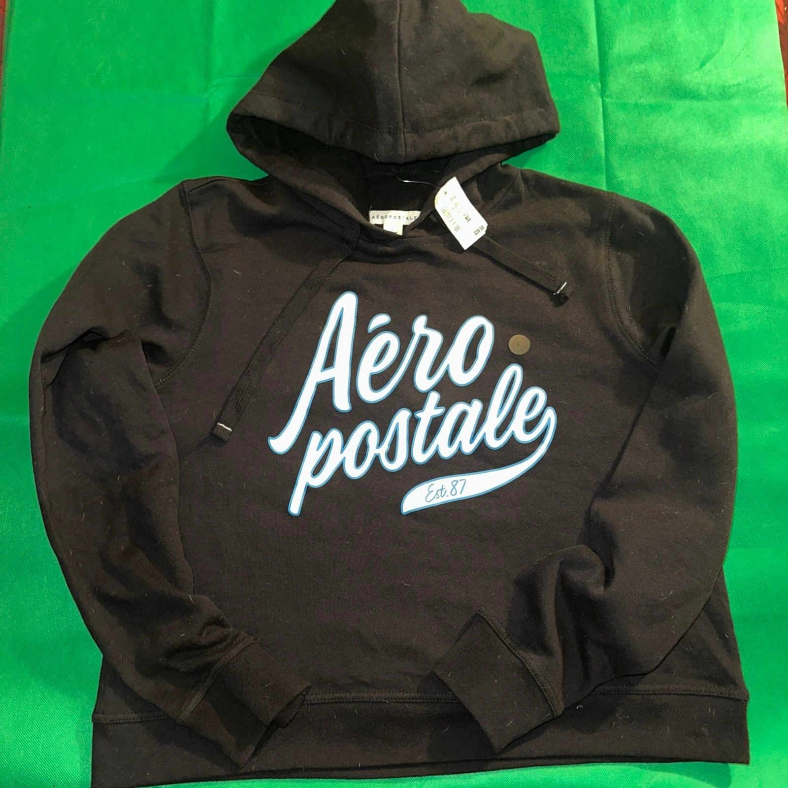 New Aeropostale Jr Girl Black Hoodie With Blue and White Logo Gr