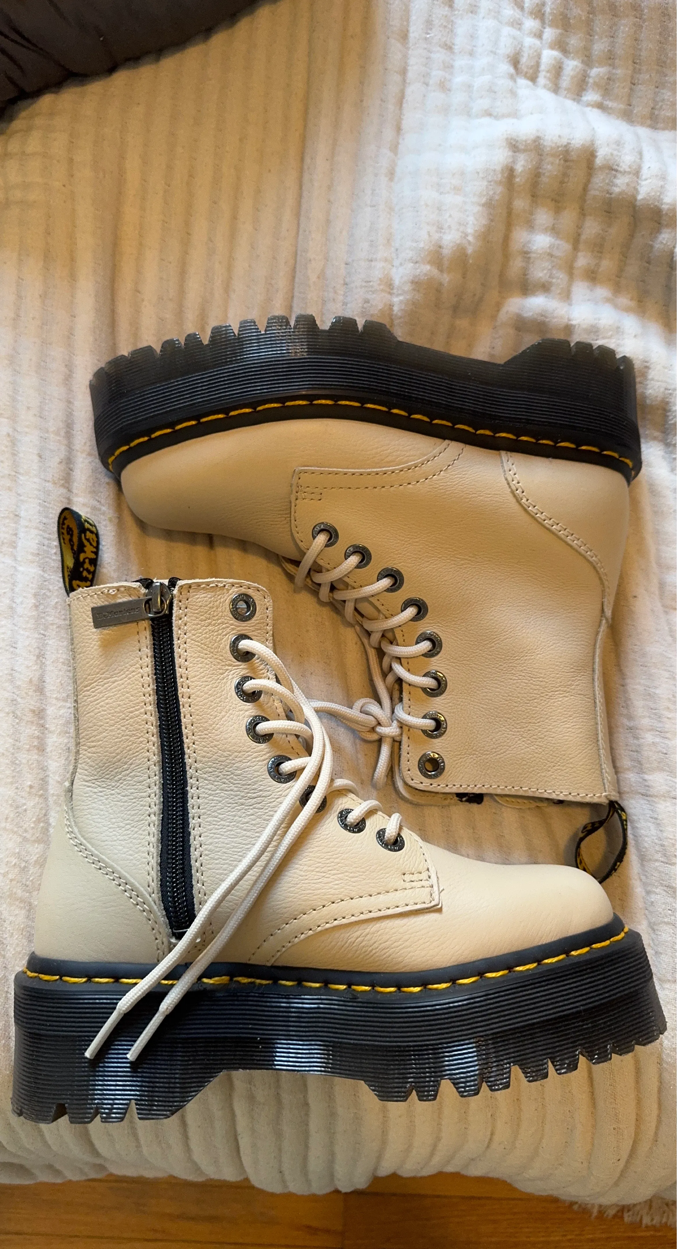Buy & SellDr. Martens JADON II Boots Beige Size 5Dr. Martens JADON II Boots Beige Size 5$130Dr. Martens JADON II platform boots light beige leather. side zipper and the classic yellow stitching. Size is 5 US ladiesConditionNewSize5BrandDr. MartensWHERE TO MEETCross roads of Ashland and BerteauView MapSELLERverifiedLaurenGraceland West812 reviews0 chats·0 favorites·36 viewsSEND CHAT TO SELLERHi Lauren! I’m interested in your listing.Hi Lauren! I’m interested in your listing.Get the Karrot app to chatSign In to chat