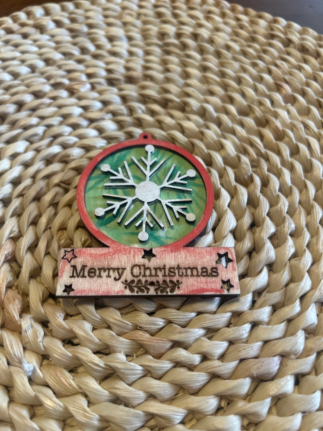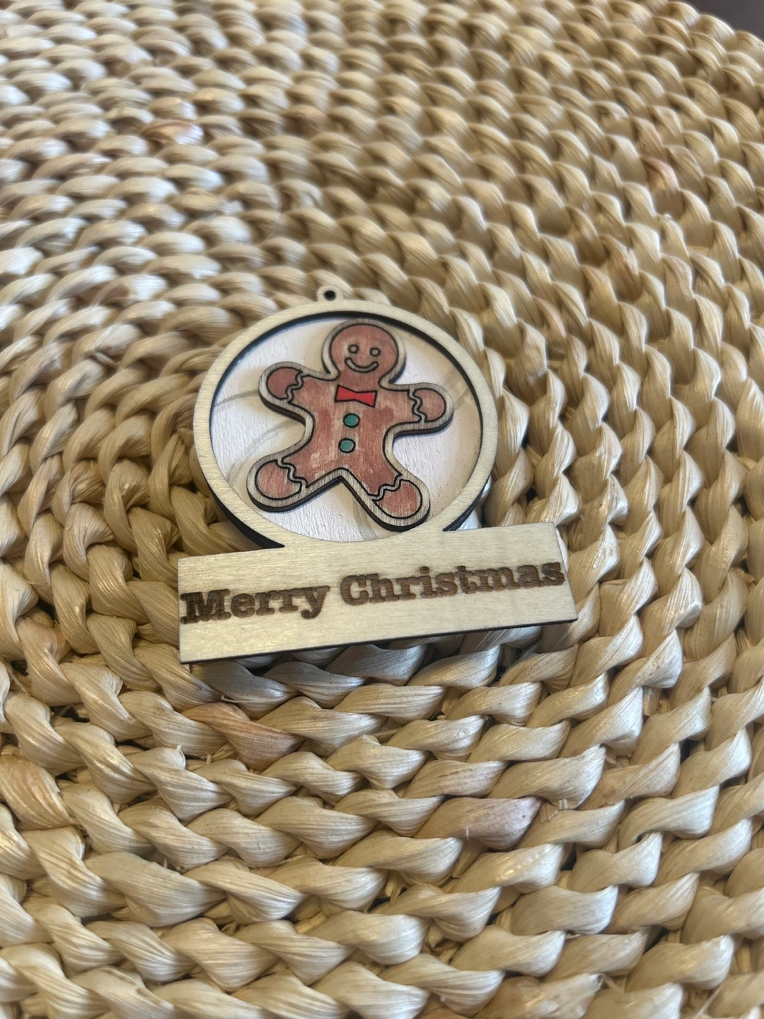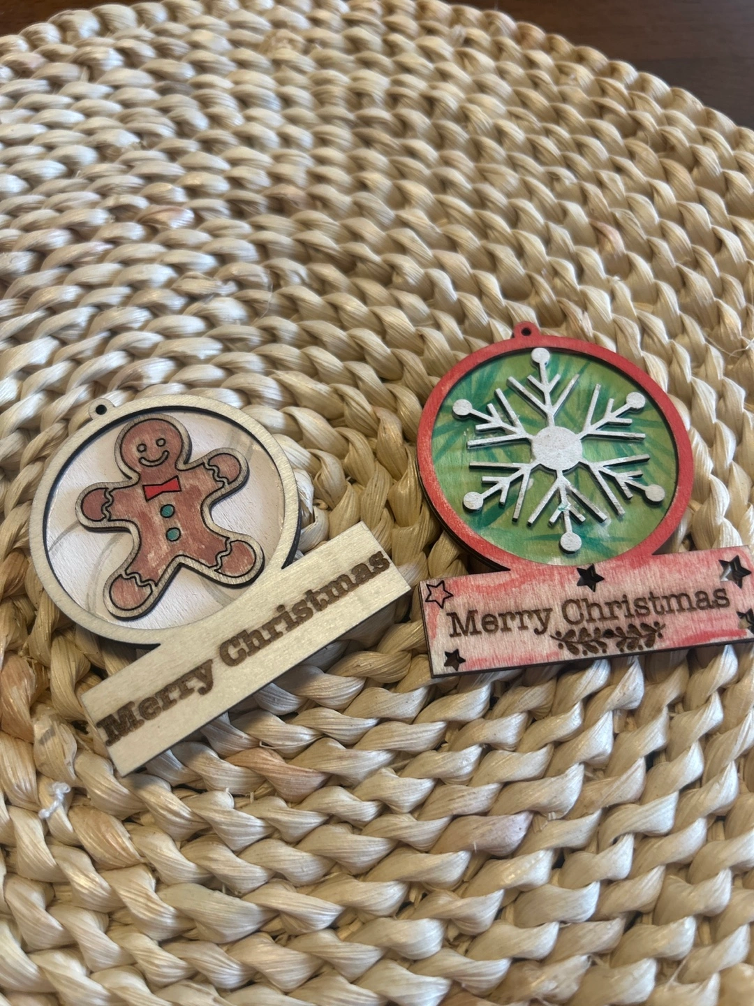 I have a couple of cute handmade Merry Christmas ornaments. They are wooden and feature a gingerbread man and a snowflake design. Perfect for adding a touch of homemade charm to your Christmas tree this year!