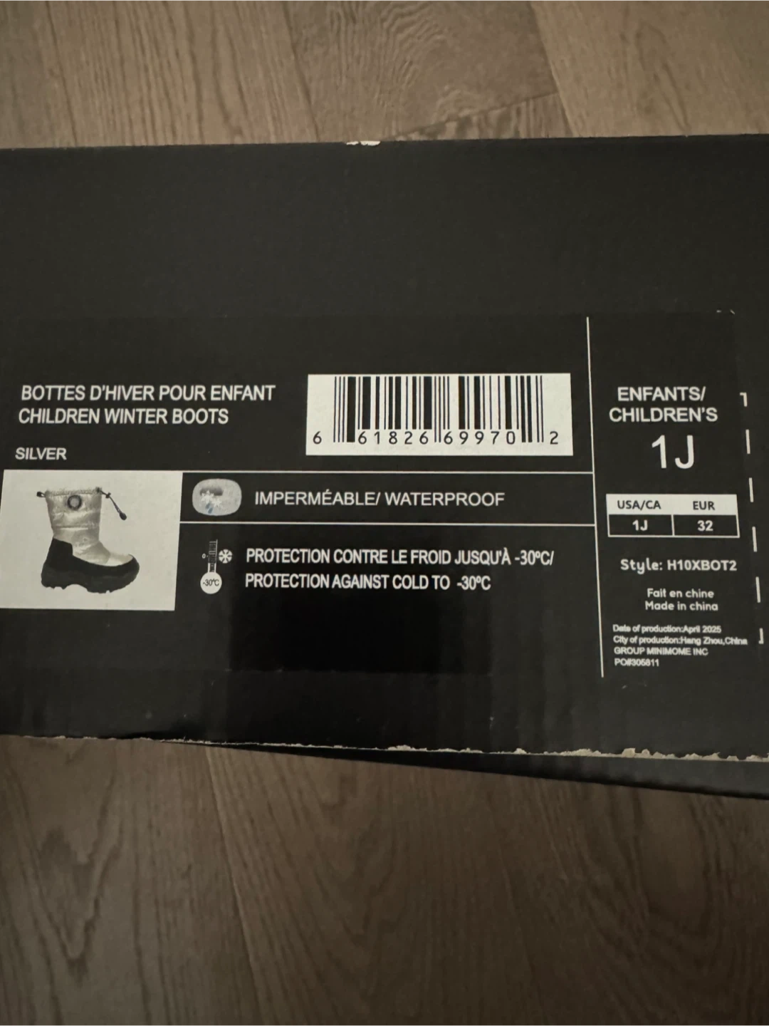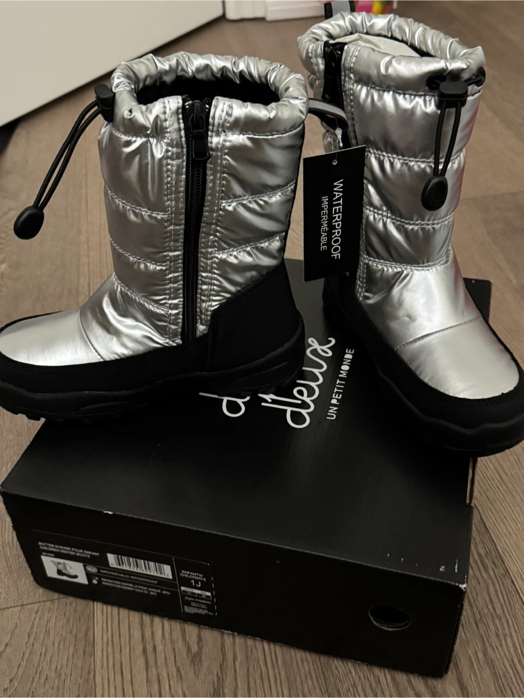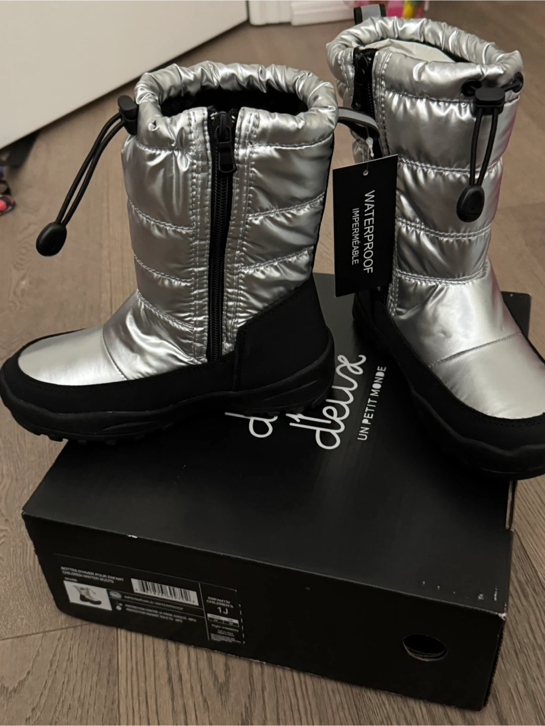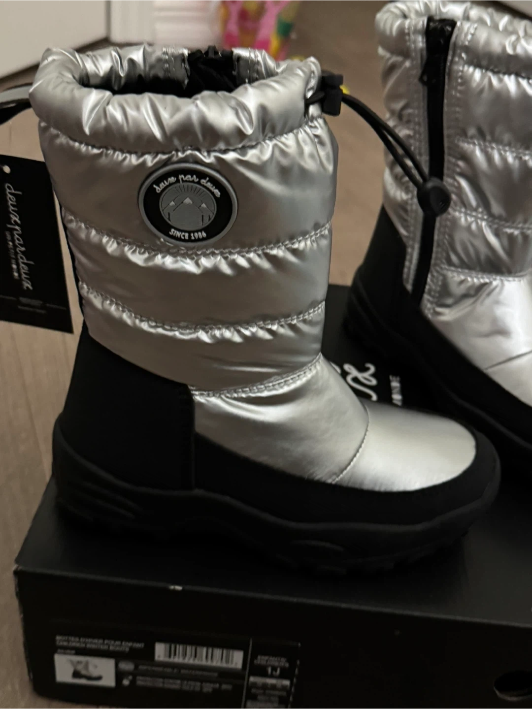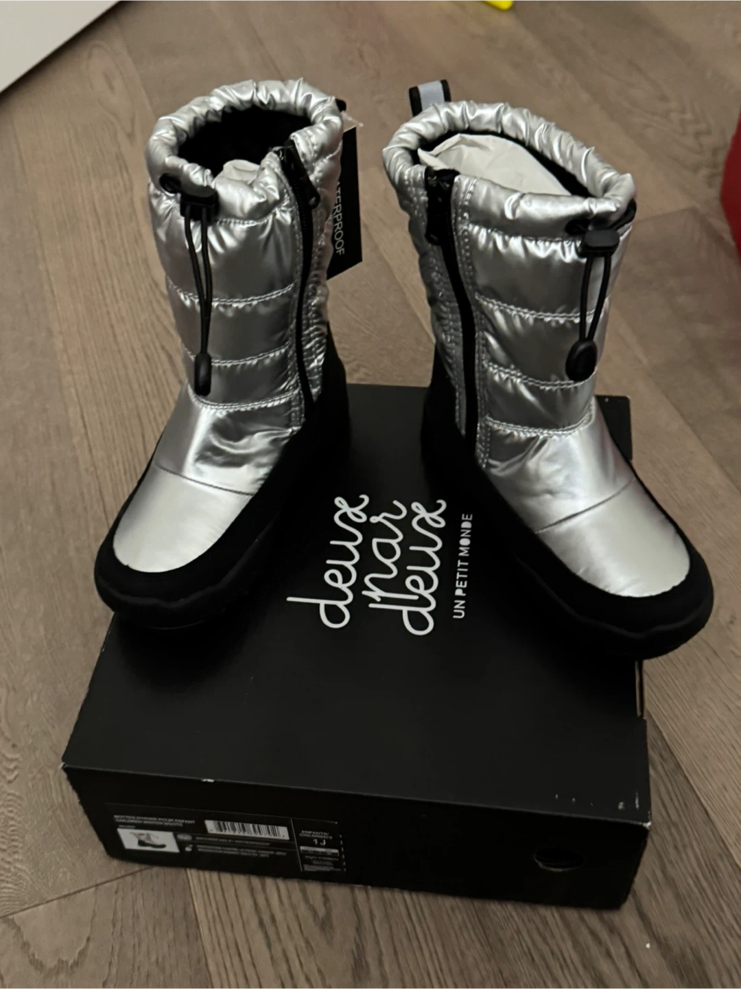 New in box Deux par Deux children's winter boots in silver. Waterproof and insulated for cold weather protection up to -30°C. Includes original box.