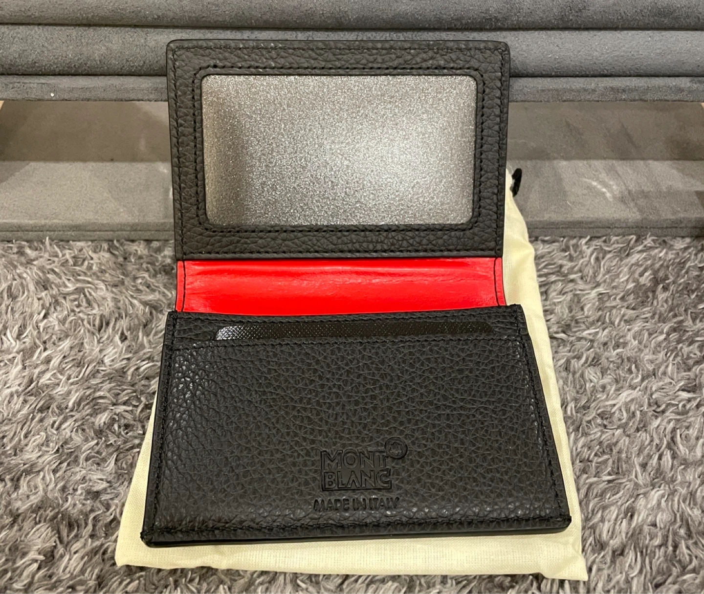 Sleek and sophisticated card holder. Premium black leather with iconic Montblanc emblem. Ideal for everyday use.