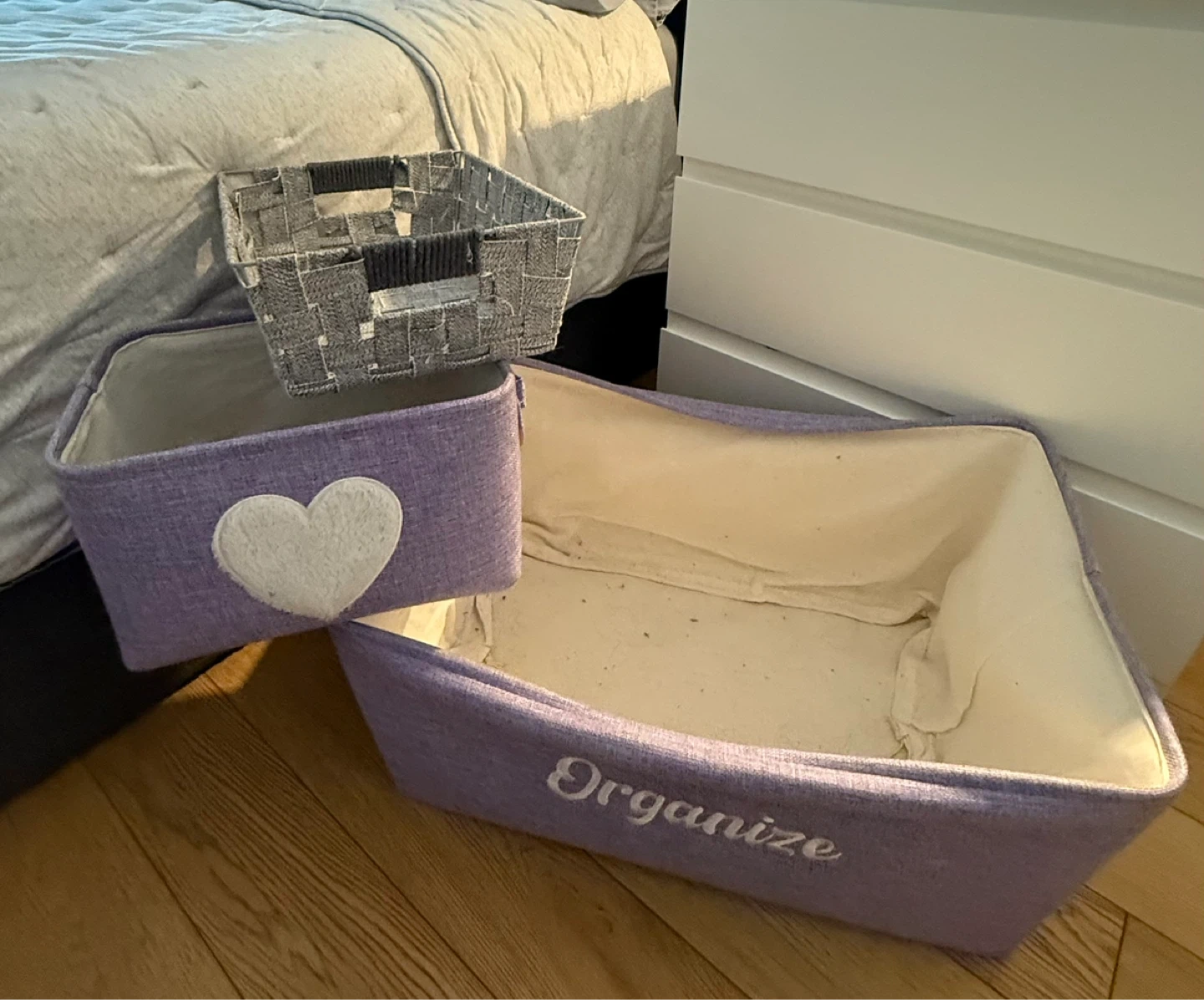 Free! Lavender "Organize" Storage Baskets with Heart Accent