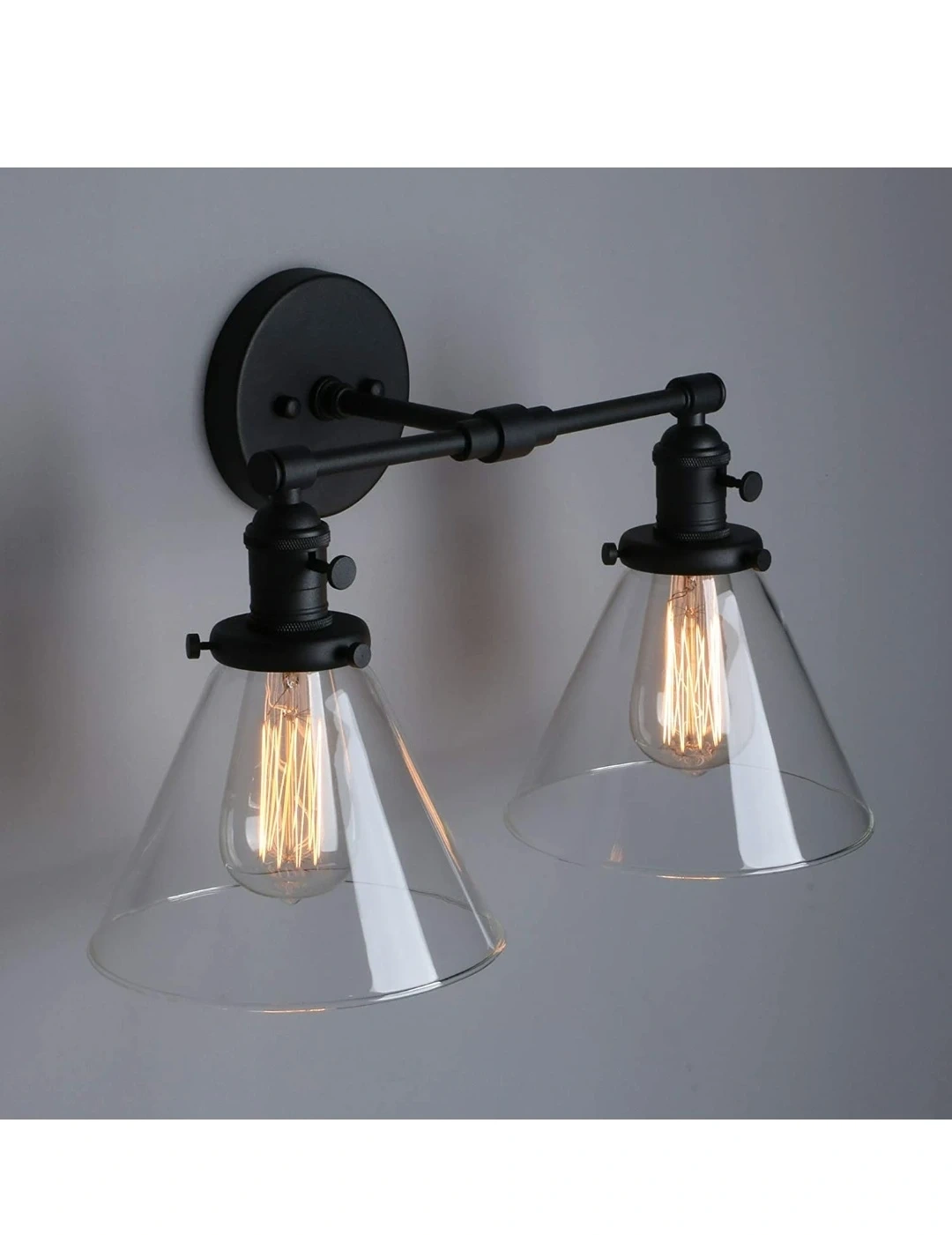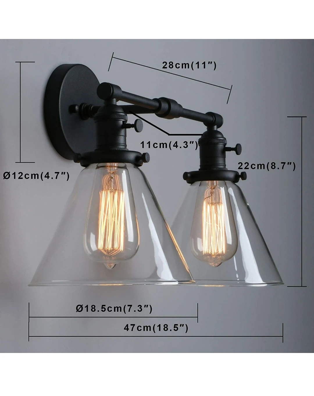 Phansty Edison industrial 2 lights wall funnel flare glass light