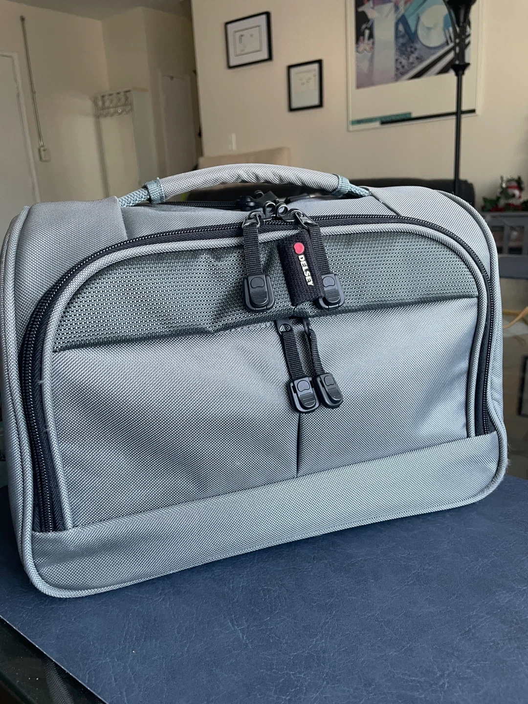 Selling a Delsey travel bag, 12.5”L x 8”W x 8”H, in a perfect condition. The measurements fit the requirements for the airlines’ personal item. It can be attached to carry-on handle. The bag features multiple compartments and pockets to keep everything in place.