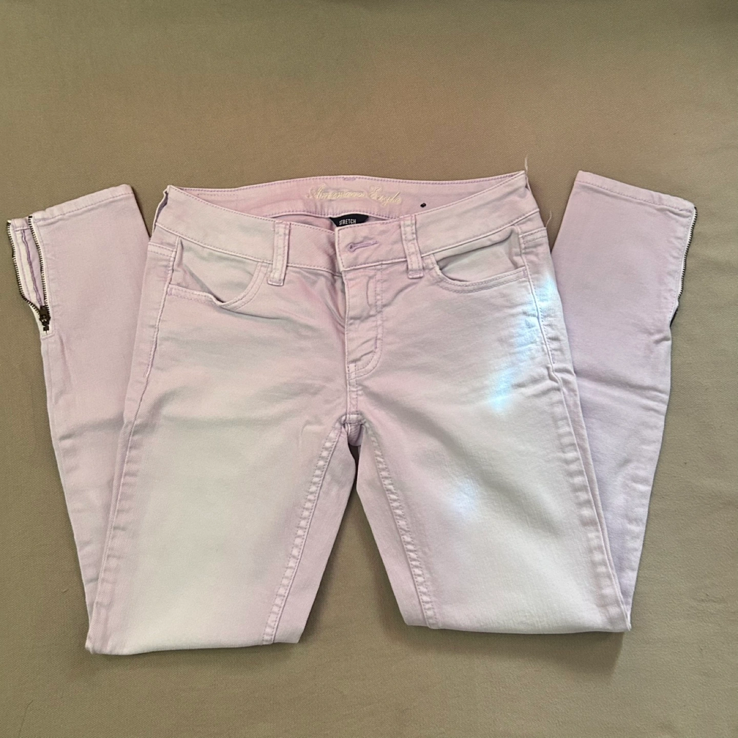 Selling an American Eagle Outfitters jeans in a lovely lilac colour! They're in great condition and feature a zipper detail at the ankle. These jeans are perfect for adding a pop of colour to your wardrobe and are super comfy
