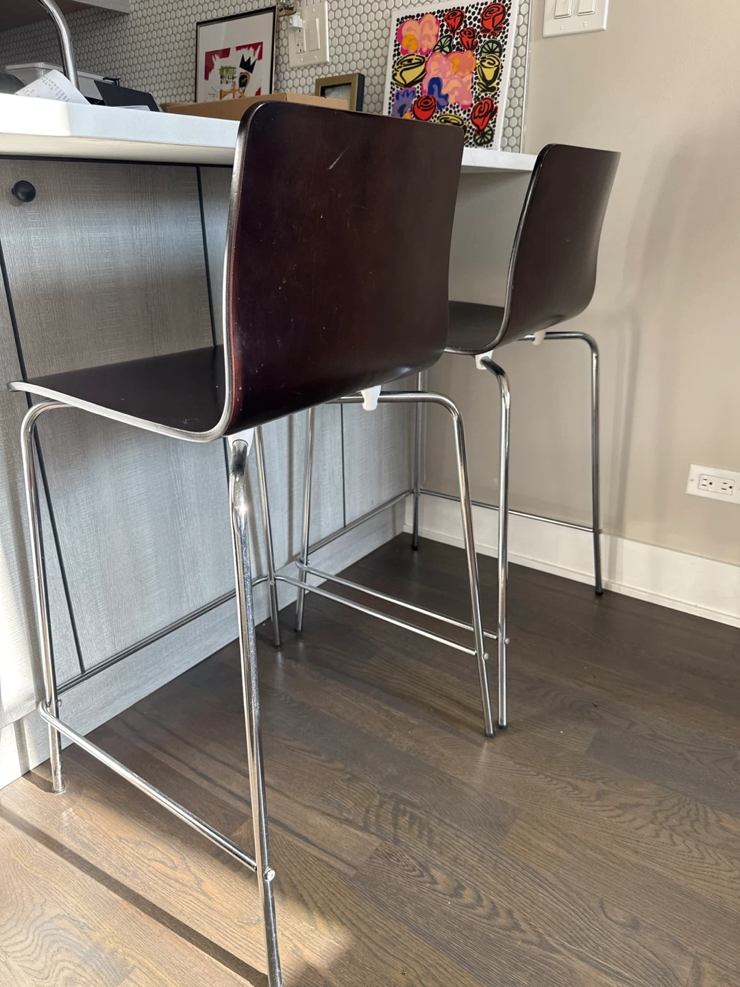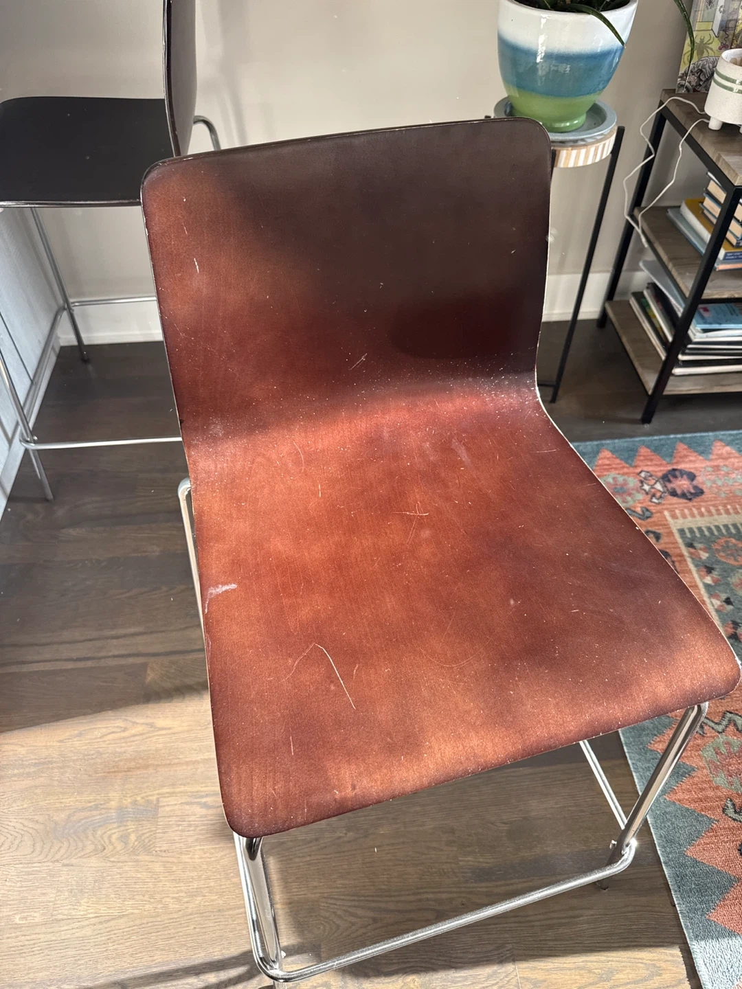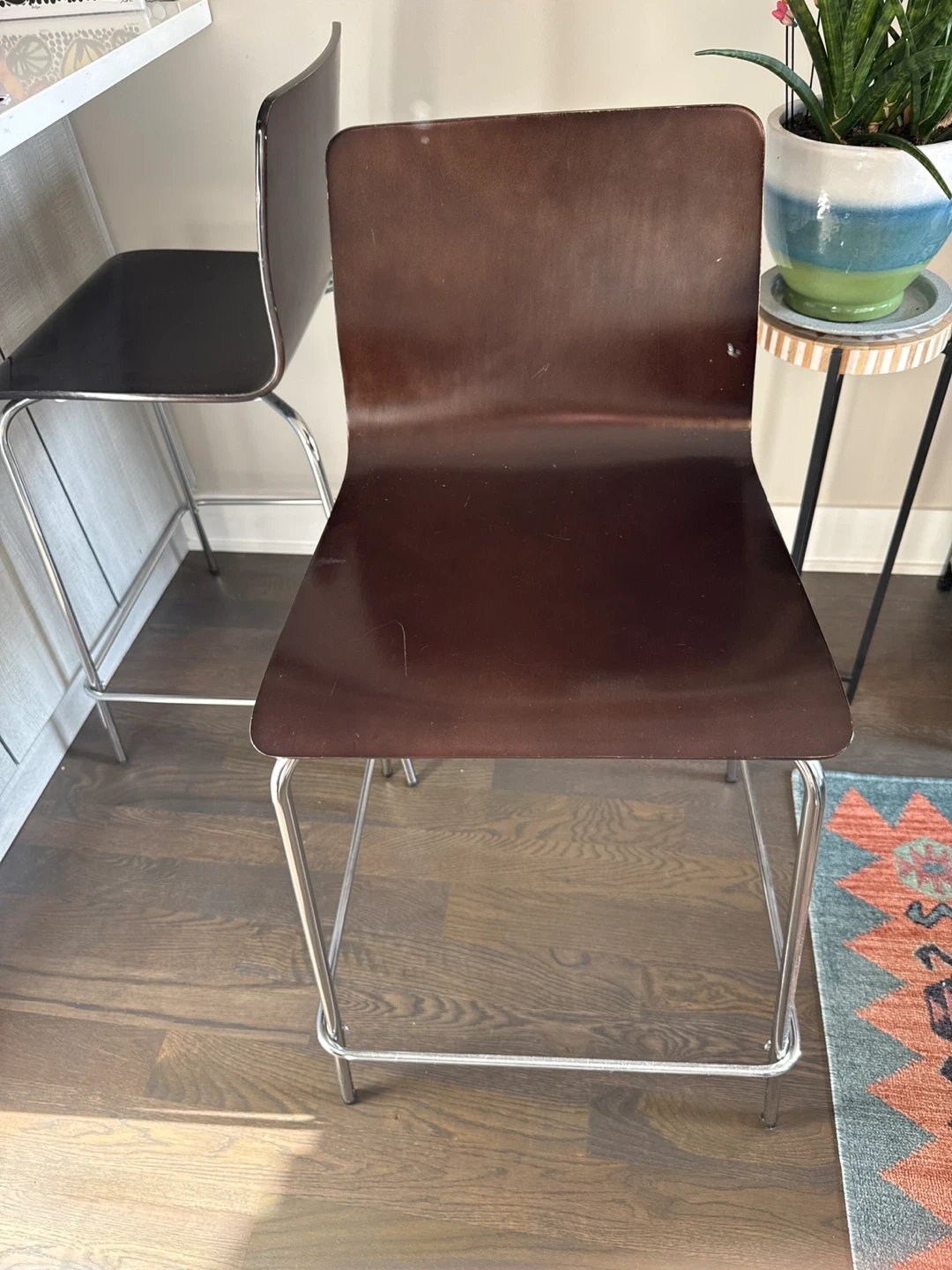 Bar Stool - Brown Wood Seat & Chrome Legs