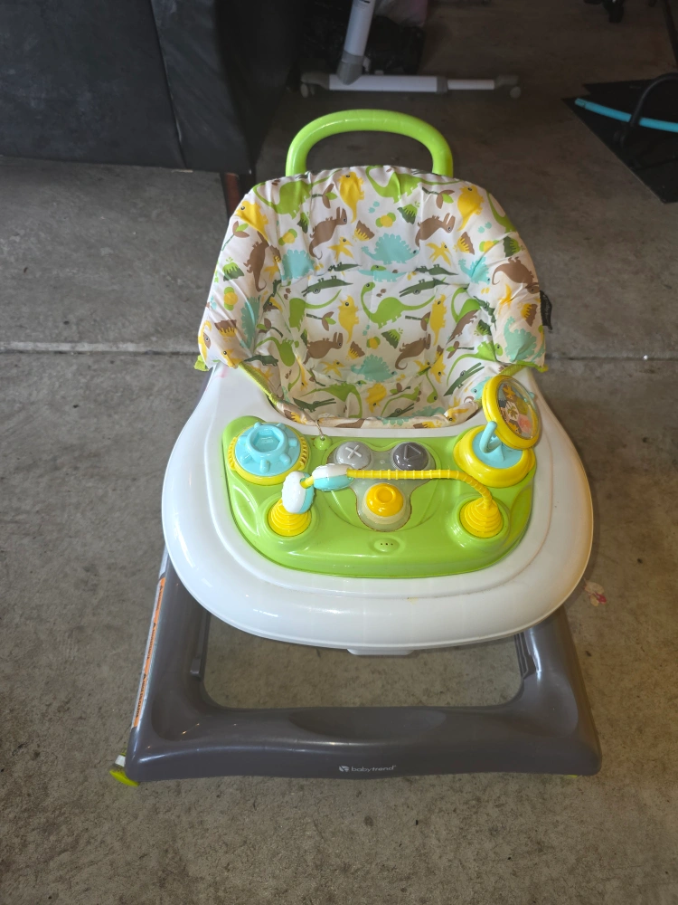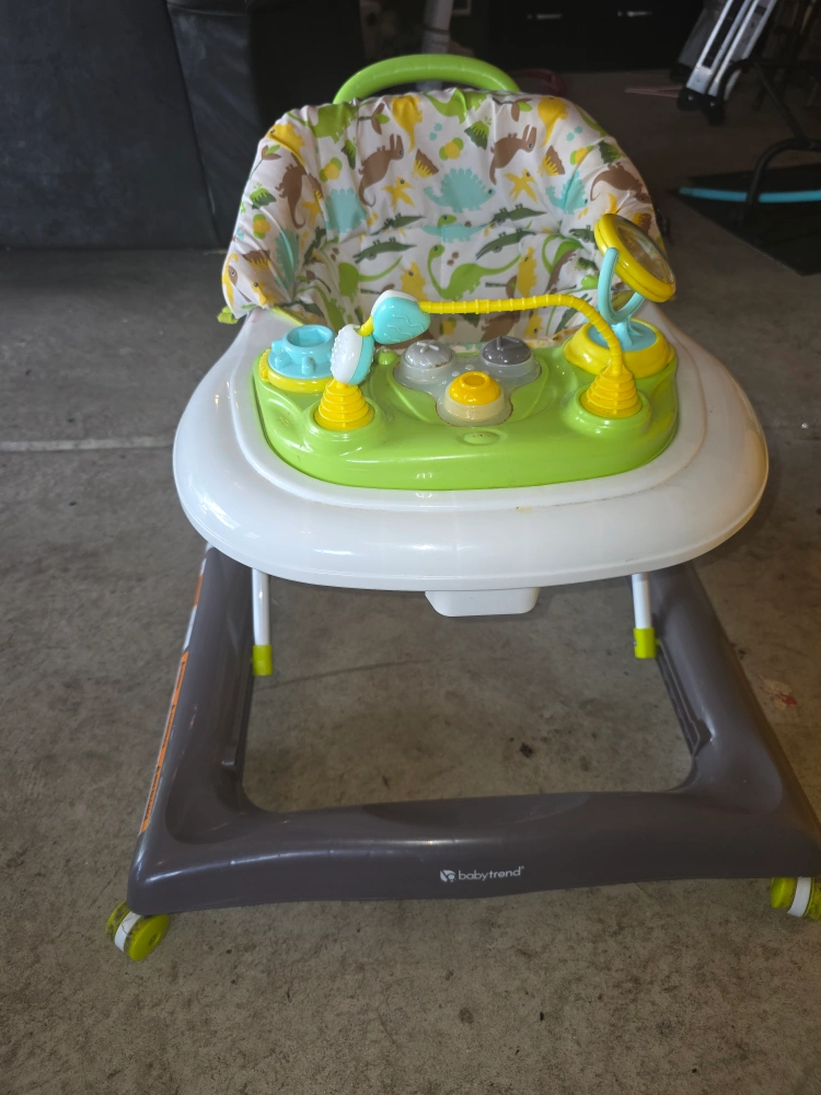 Selling a Baby Trend walker in great condition! It features a fun dinosaur print on the seat and a bright green and yellow activity center. Perfect for little ones learning to walk and explore!