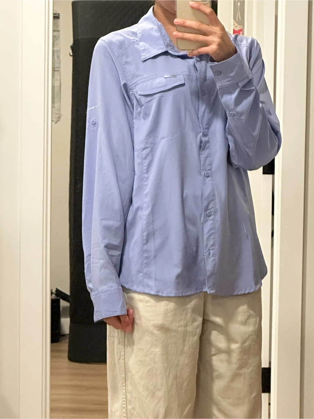 • Features: Breathable material, roll-up sleeves, chest pockets
