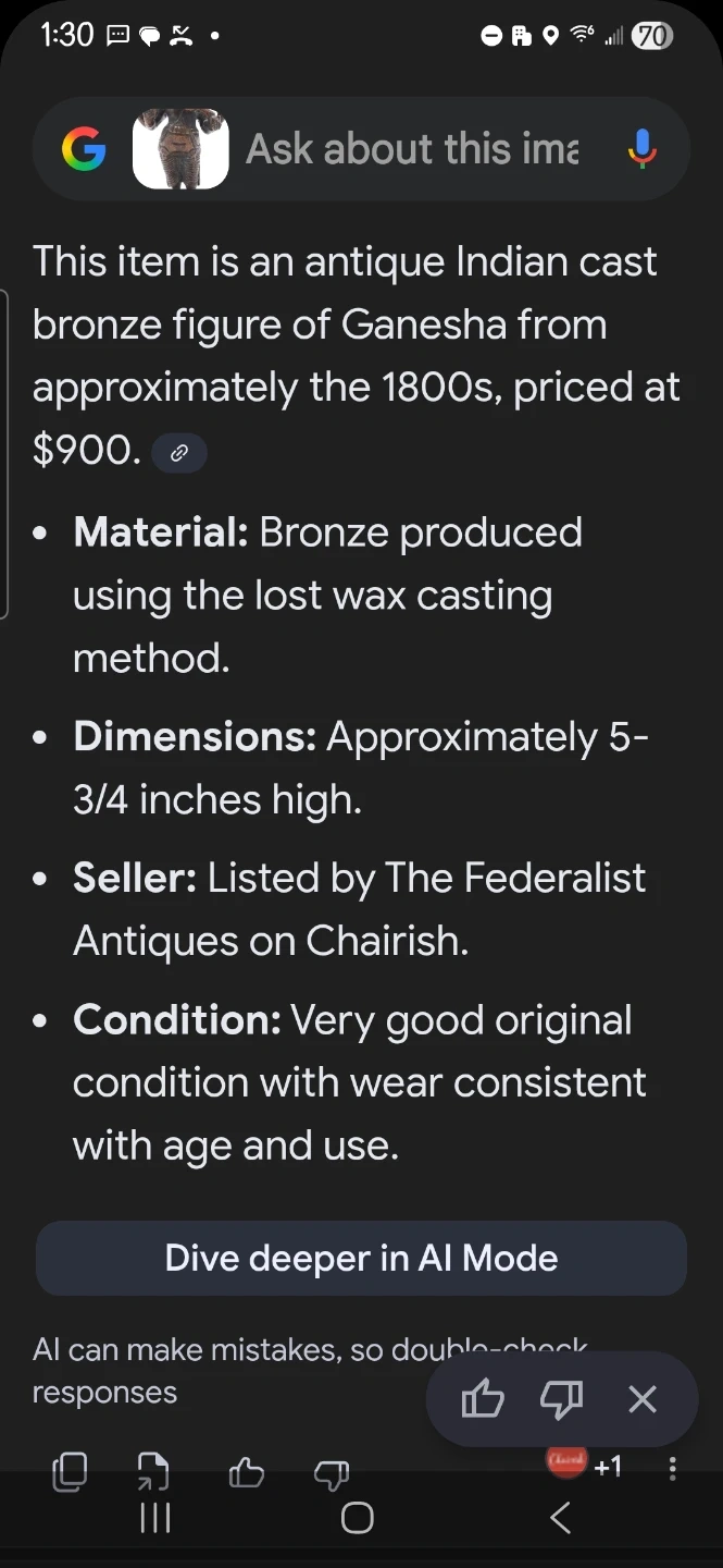 Antique Indian Cast Bronze Ganesha Figure C. 1800s
