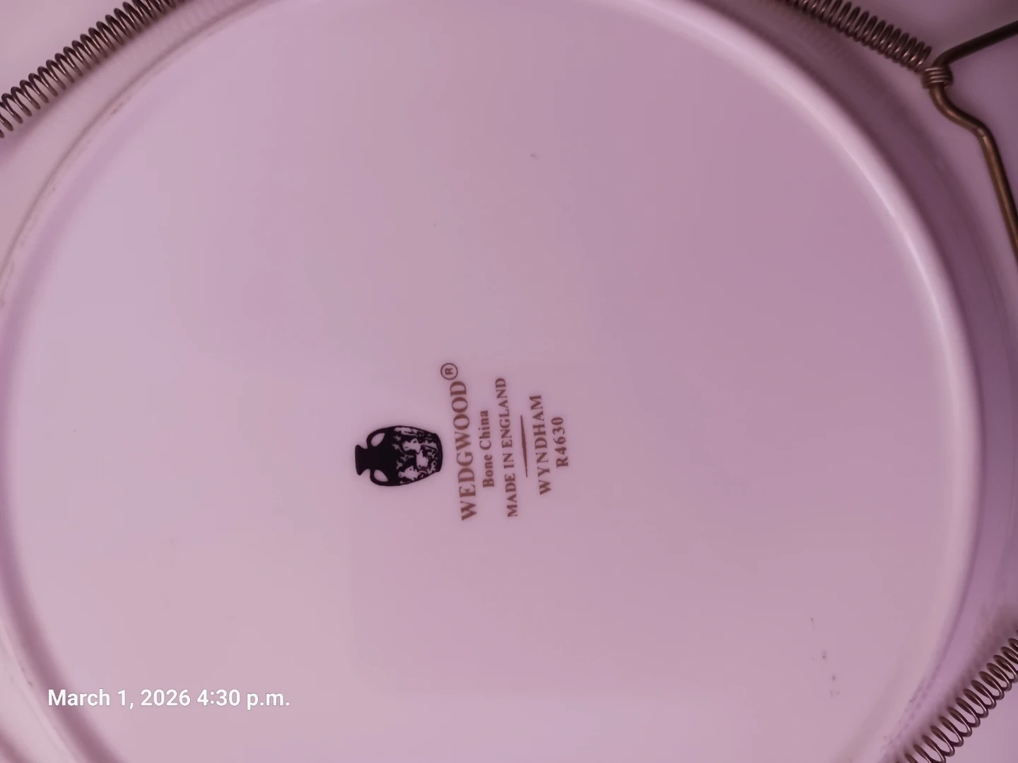 A beautiful bone china plate from WEDGWOOD, featuring the Wyndham pattern. This plate measures approximately 9 inches in diameter. It's made in England and perfect for serving guests or for everyday use.