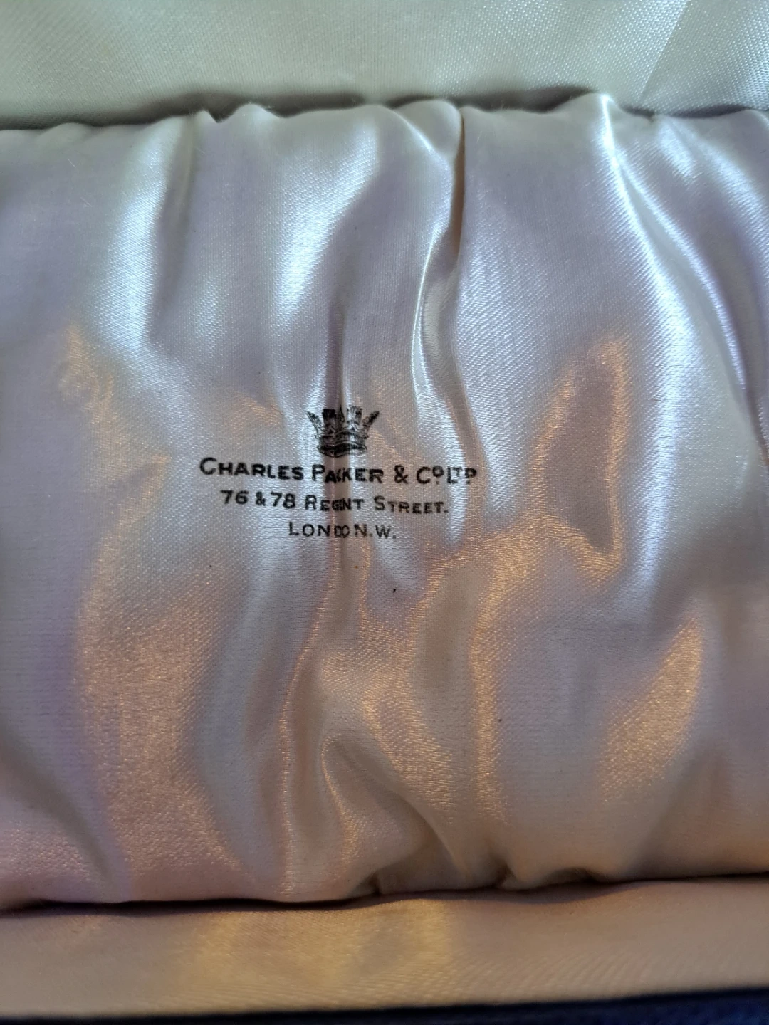 This antique sterling silver sugar bowl set features a lidded bowl, a creamer, and a spoon. Made by Charles Packer & Co. It comes in its original presentation box.