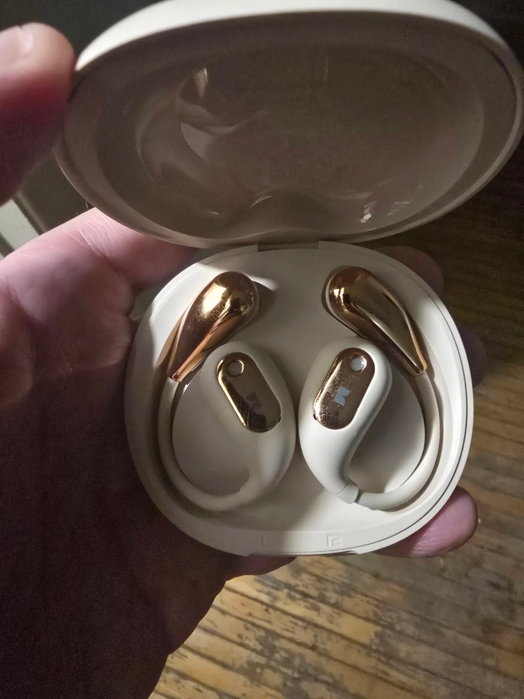 Monster wireless earbuds in a charging case. The earbuds are white with rose gold accents. They use USB-C for charging. Looking for 30.00 cash, will listen to reasonable offers. No trades.