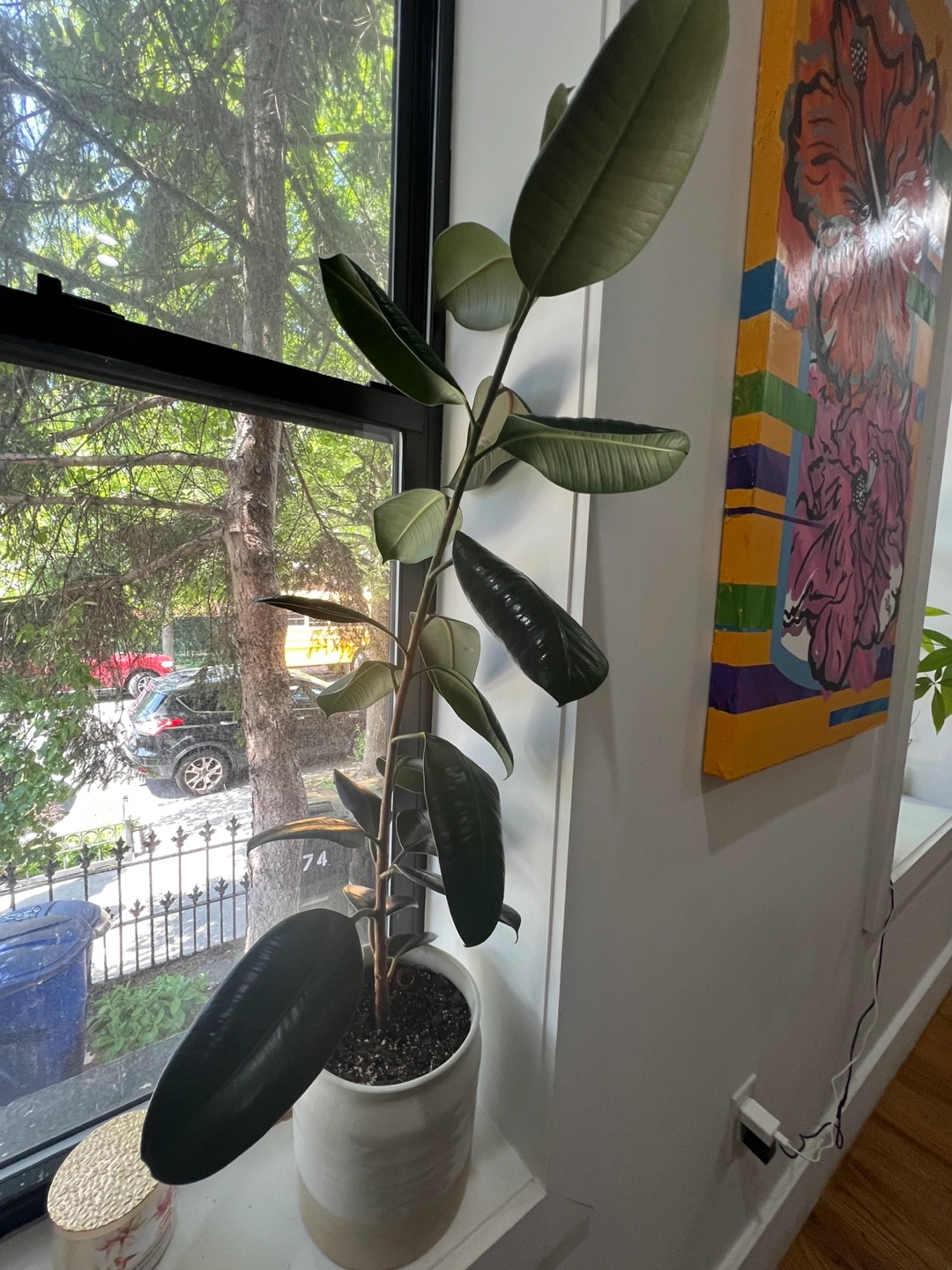 Plant inside a decorative pot. Large green leaves, with a good height. Can be the perfect way to add a touch of nature to your space, creating a sense of calm.