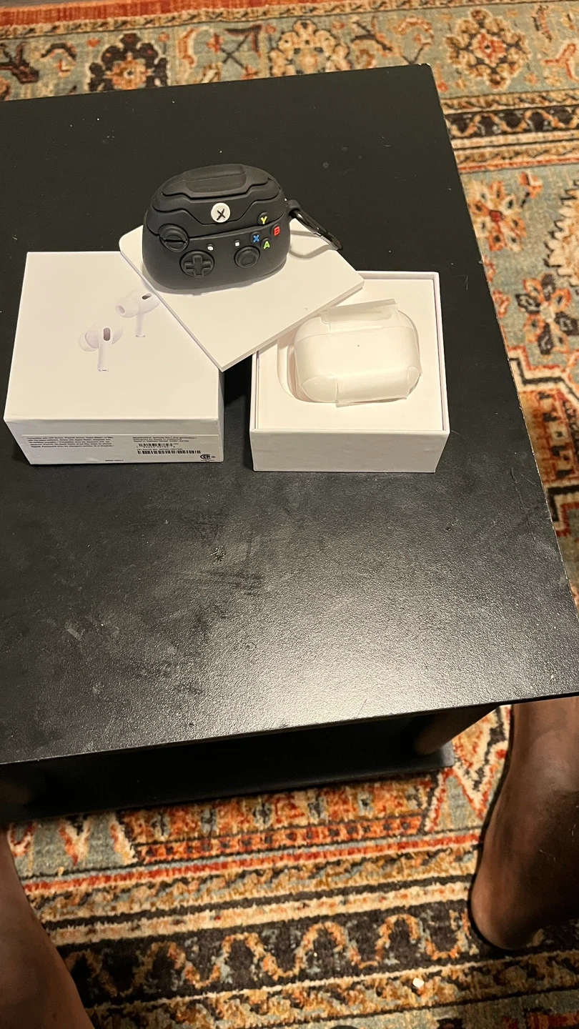 AirPods Pro (2nd generation) with MagSafe Charging Case. Designed by Apple in California. Assembled in Vietnam. Includes original box, case, and a protective cover.