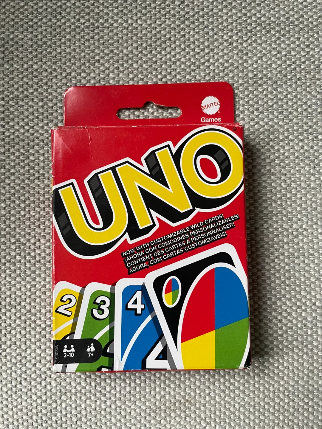 This is a classic UNO card game by Mattel. It includes customizable wild cards and is suitable for 2-10 players, ages 7 and up. It's a fun game for family and friends!