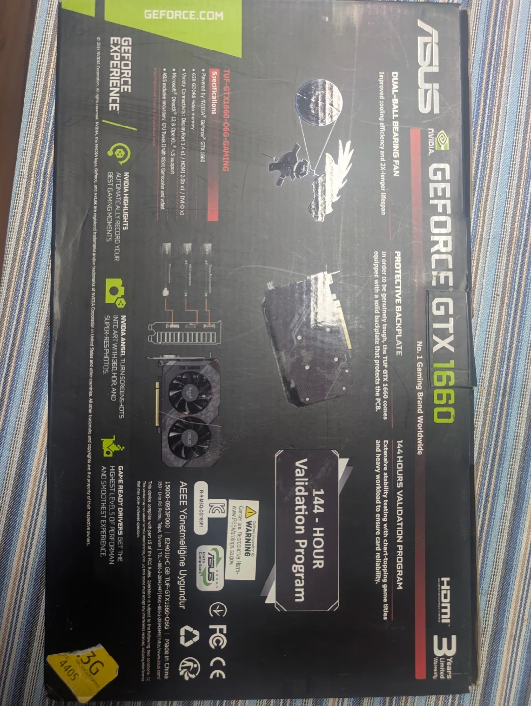 ASUS TUF Gaming GeForce GTX 1660 OC Edition graphics card with 6GB GDDR5 memory. It features a Dual-Ball Bearing fan for improved cooling and durability. This is a gaming graphics card. With a Acer 21 inch monitor all together for $130.