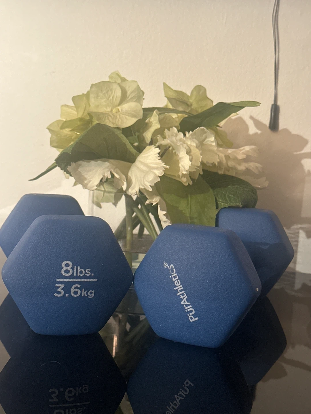 Selling a set of Pura Athletics dumbbells. Each dumbbell weighs 8 lbs (3.6 kg) and they are in great condition! Perfect for your home workouts