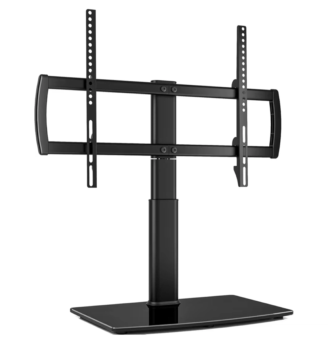 UNIVERSAL SWIVEL TV STAND WITHOUT DRILLING HOLE ON WALL ☞ Designed with a heavy duty steel pole and 8mm thickness tempered glass base, this free standing TV stand can easily hold your TV on your table with safety and stability, you don't need drill holes on your wall,besides this table top TV stand fits 32 to 70 inch TVs with VESA pattern from 100mmx100mm to 600mmx400mm, holds up to 88lbs screens