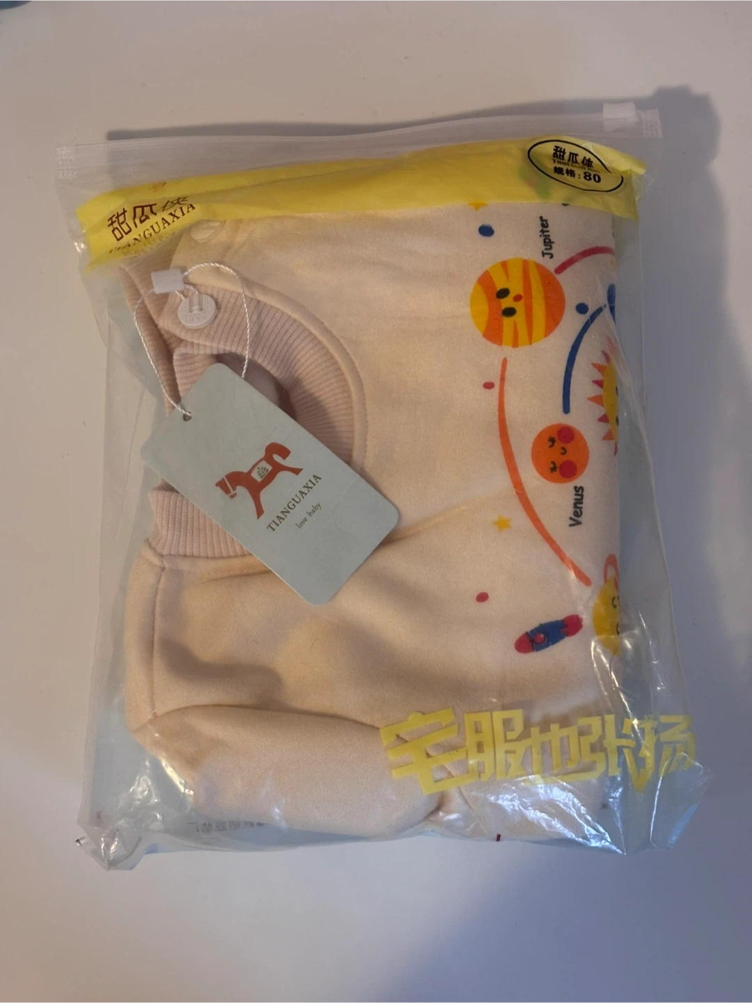Selling a brand new piece of baby clothing from TIANGUAXIA! The packaging indicates a size of 80. The design features the Solar System. Perfect for your little one!