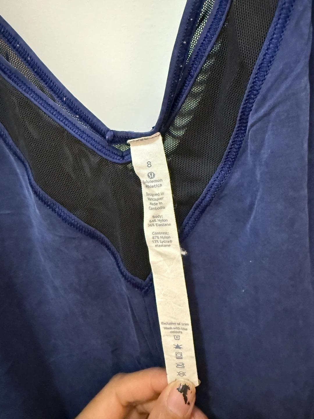 Selling a Lululemon tank top in size 8! The body is made of 94% nylon and 6% elastane, with the contrast being 87% nylon and 13% elastane. It's a stylish and comfy piece for your activewear collection