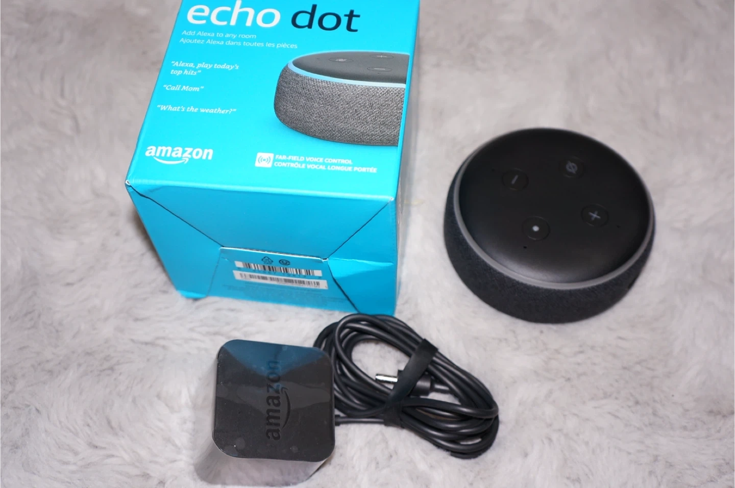 This Amazon Echo Dot (3rd Gen) adds Alexa to any room. It's designed for voice-control music, weather updates, and more. Includes the Echo Dot and power adapter.
