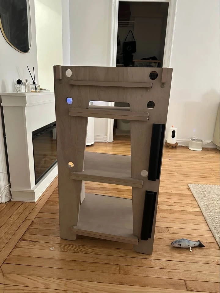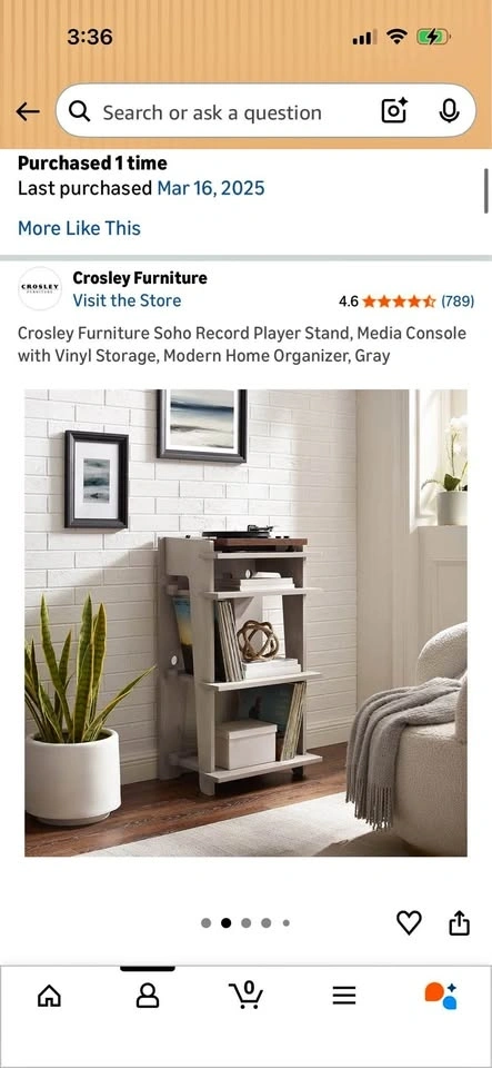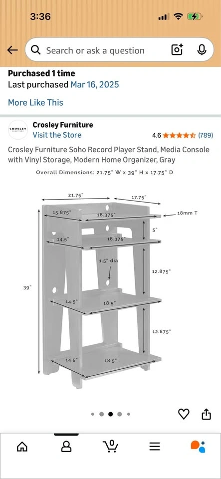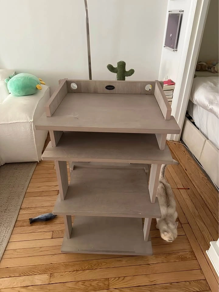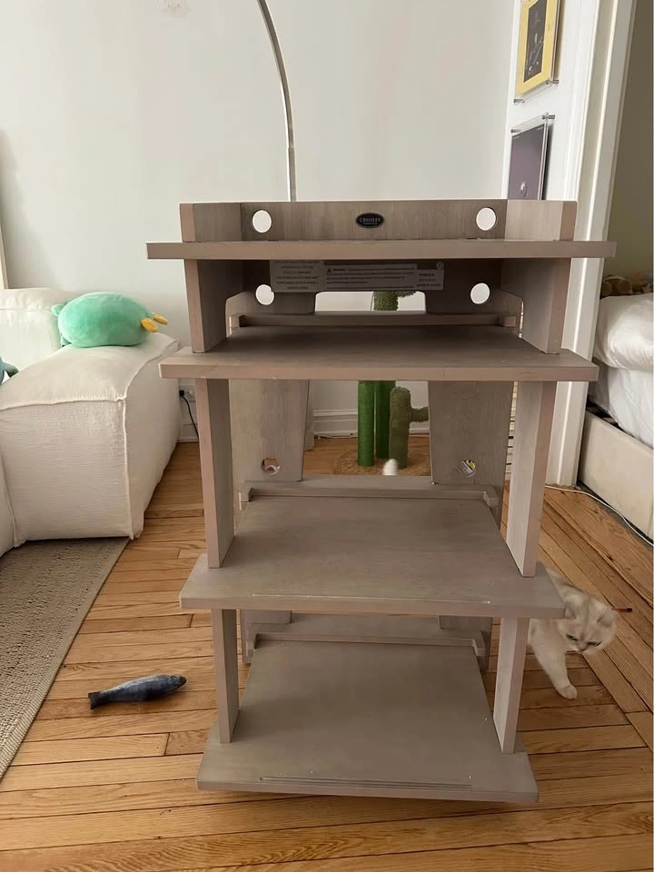 Moving sale! Modern Record Player Stand, Media Console with Vinyl Storage, Modern Home Organizer, Gray. Never been used and kept in my closet. Super sturdy and heavy duty (43.56 lbs). Has cord organizer attached with holes. Dimensions: 17.75"D x 21.75"W x 39"H. Pickup on 56th & 8th.