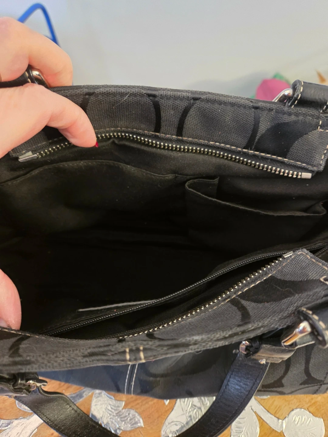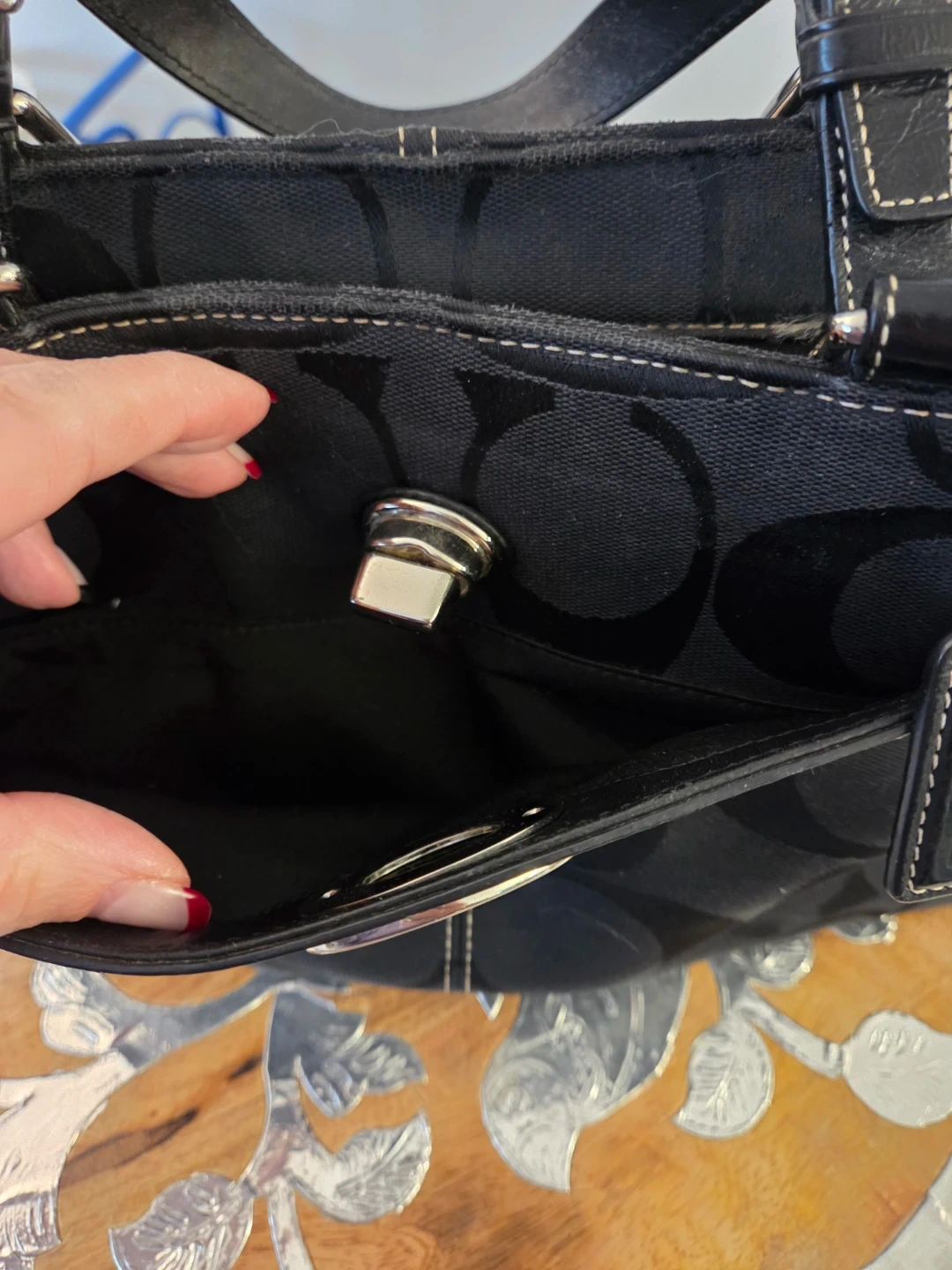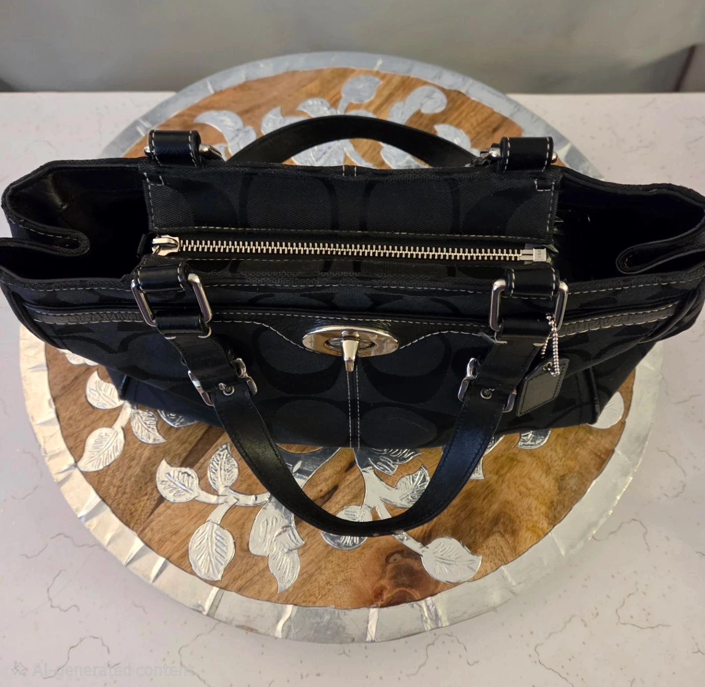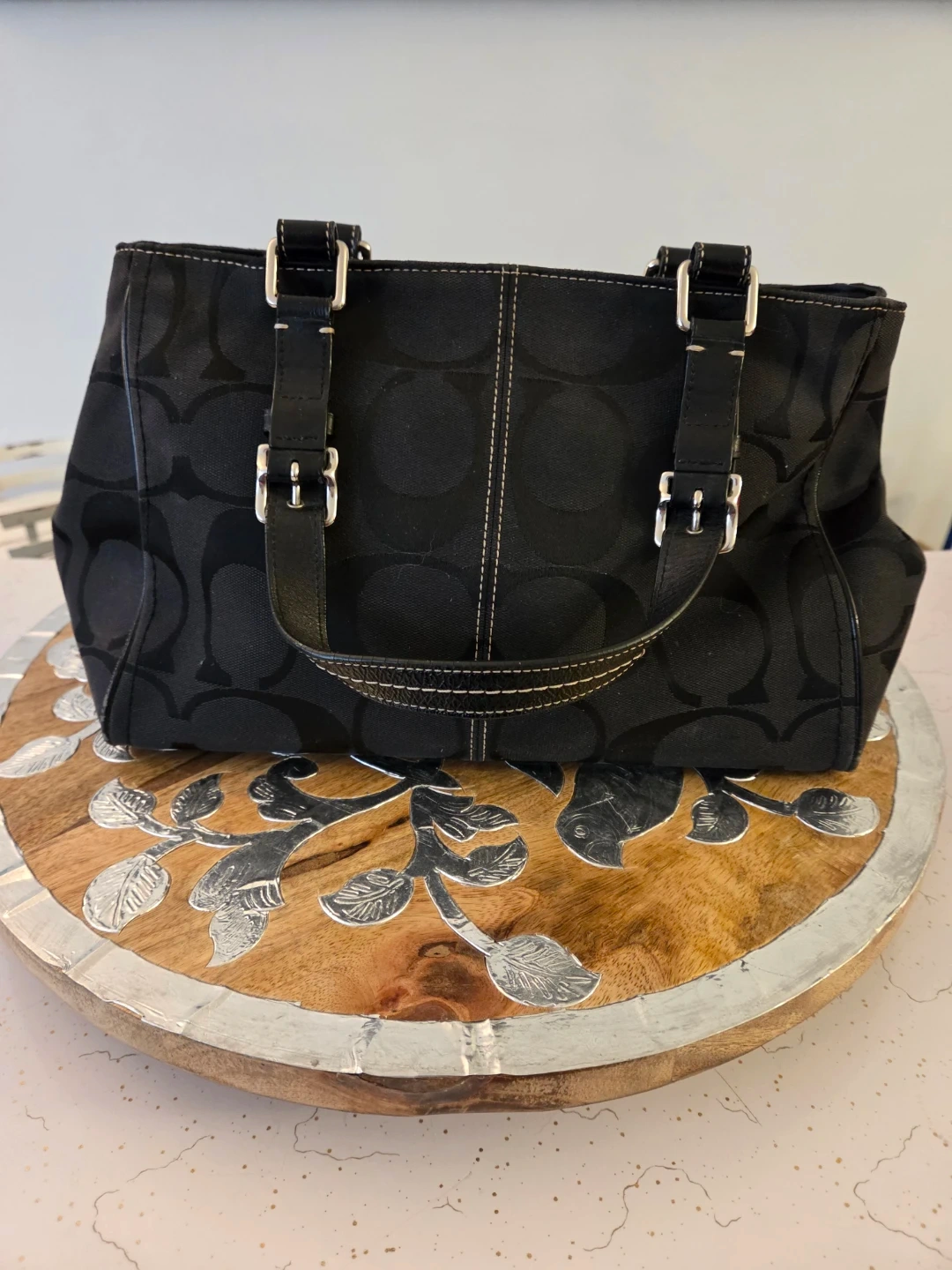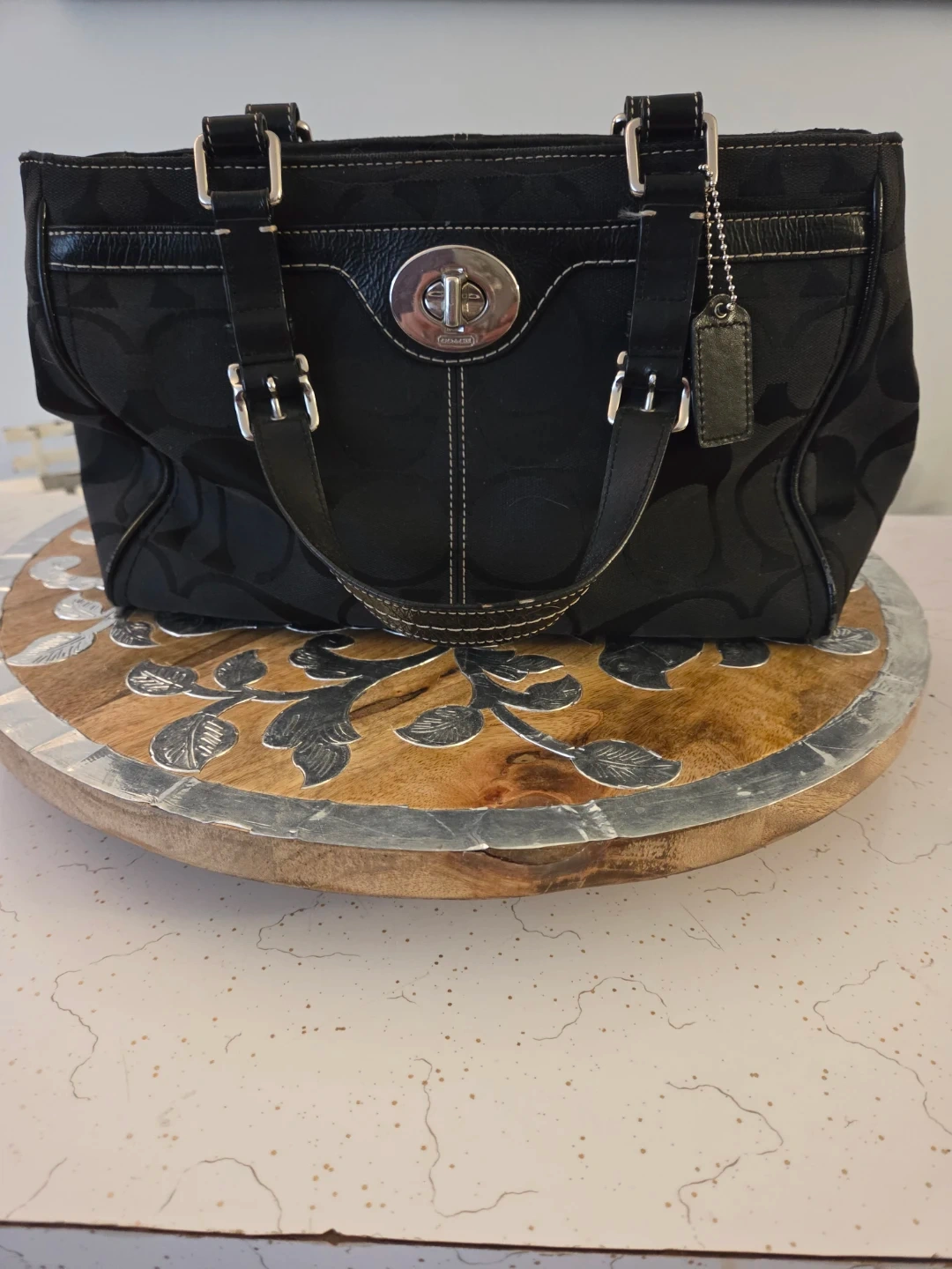 COACH Hampton F1446 Lg Black Sig Canvas Carryall Tote