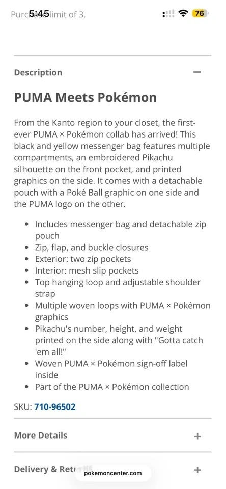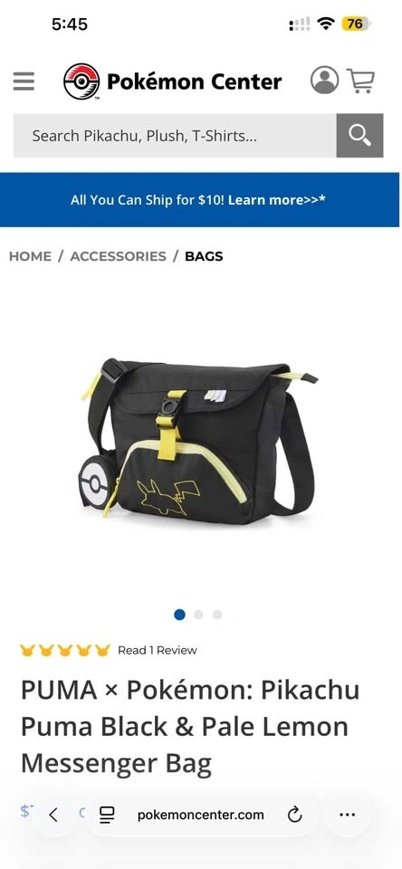 PUMA x Pokémon Pikachu Messenger Bag 🖤💛