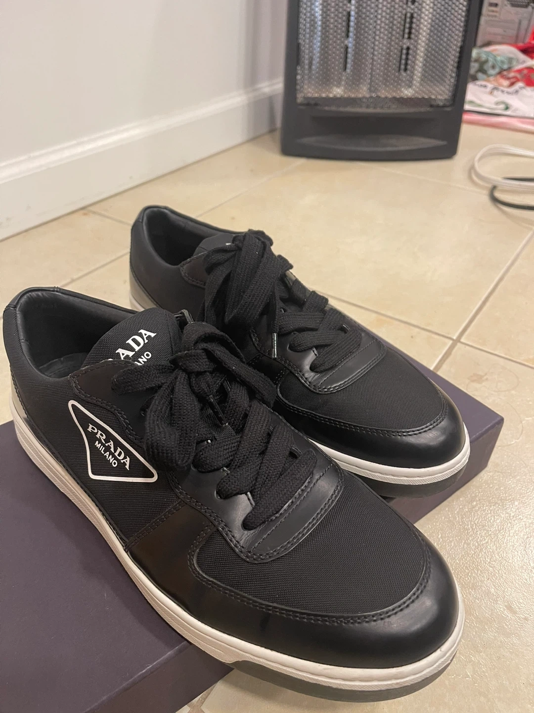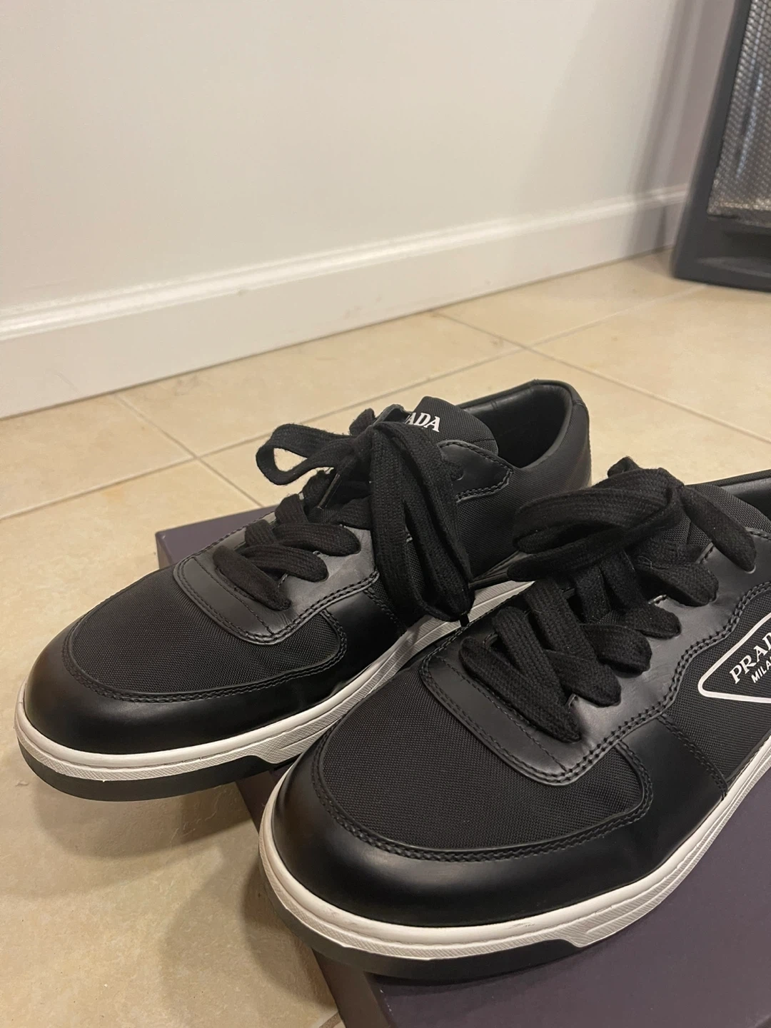 Prada Black Leather & Nylon Sneakers