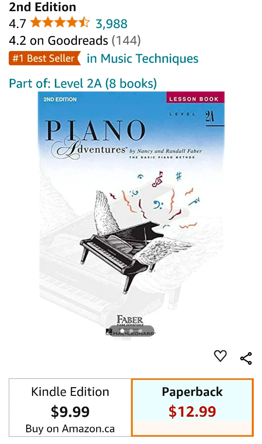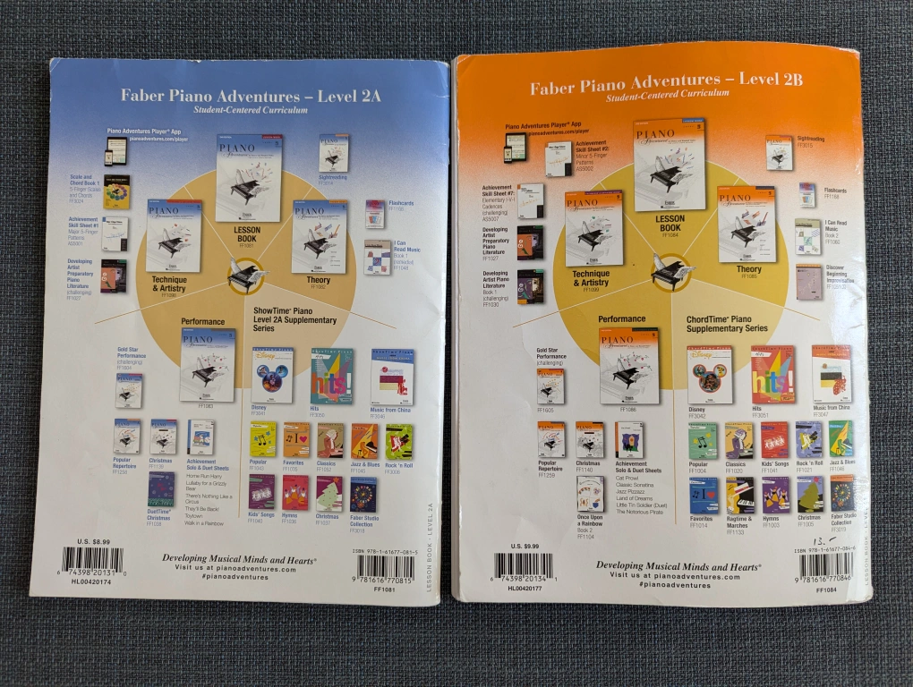 Piano Books- Piano Adventures 2A + 2B Lesson Books by Faber.
