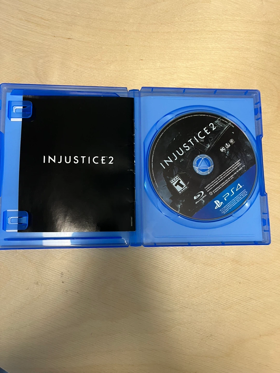 This is the Injustice 2 video game for PlayStation 4. It includes the game disc and manual. The ESRB rating is Teen.