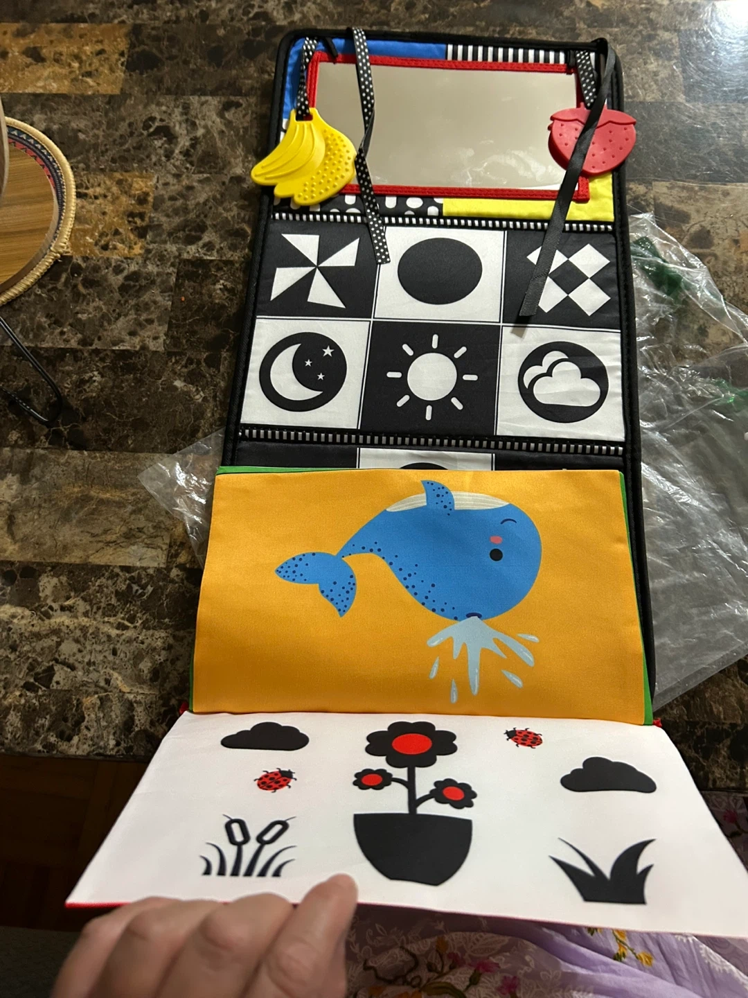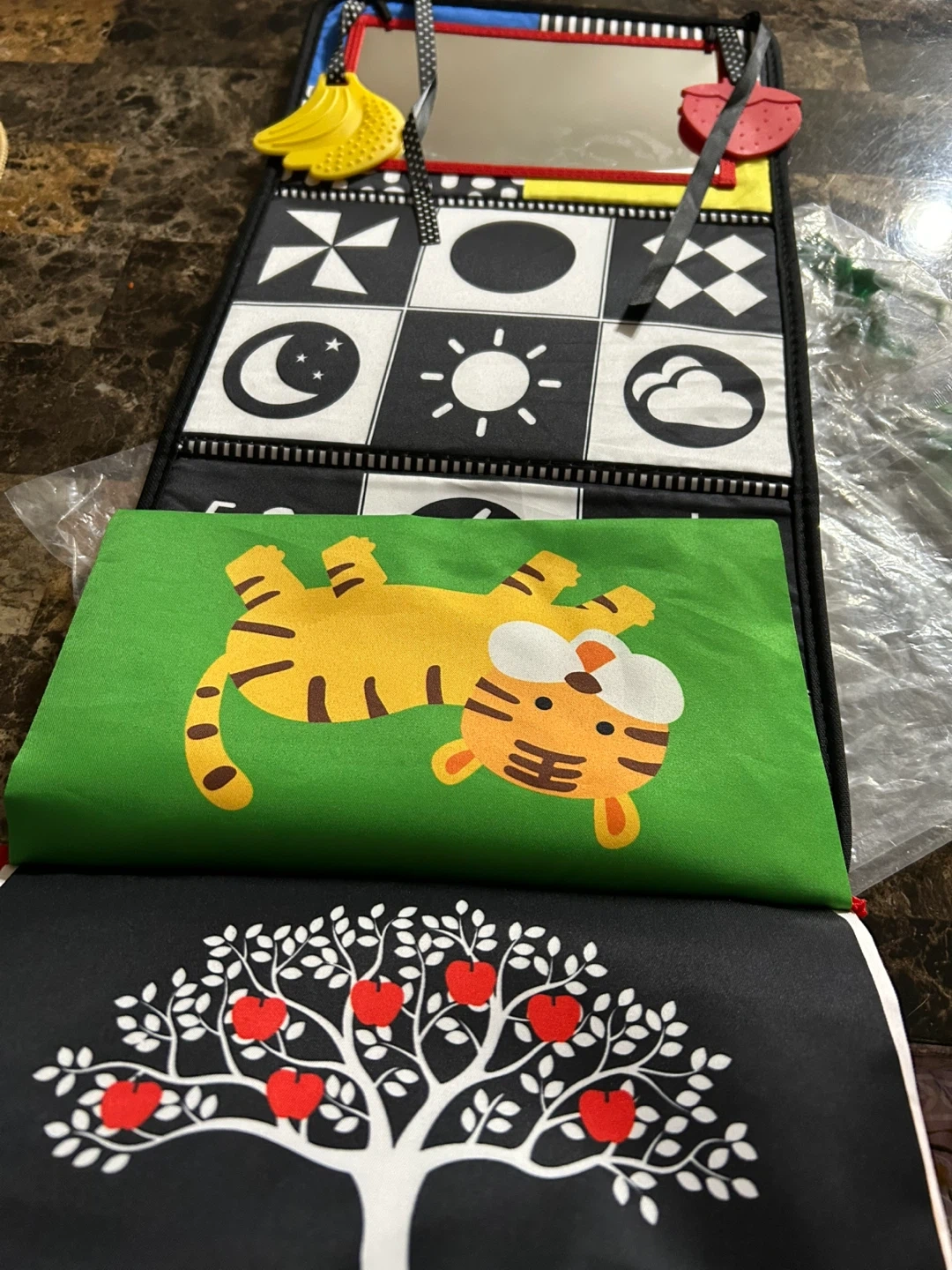 Check out this Infantino tummy time activity mirror! It's got lots of bright colours and fun patterns to keep your little one entertained. Perfect for encouraging tummy time and developing those early motor skills!