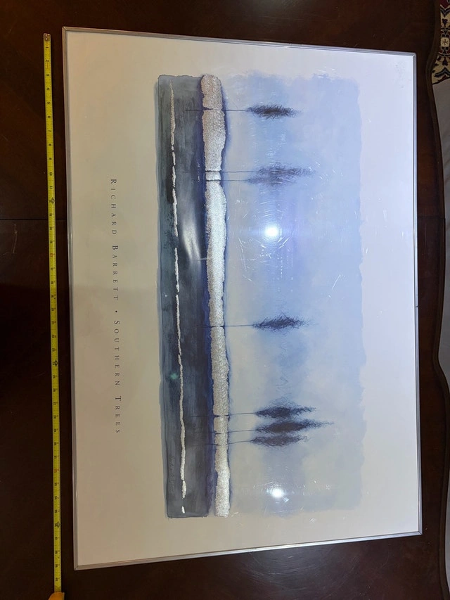 Beautiful large framed abstract landscape print titled “Southern Trees” by Richard Barrett. Features calming blue and grey tones with a minimalist tree design—perfect for a living room, bedroom, office, or condo. ✔ Glass-front framed ✔ Excellent condition ✔ Neutral modern design ✔ Ready to hang Approx. size: Large wall art (see photos with measuring tape for scale) This piece adds a calm, upscale feel and works well with modern, contemporary, or minimalist décor. Price: $80 (open to reasonable offers) Pickup only Message if interested