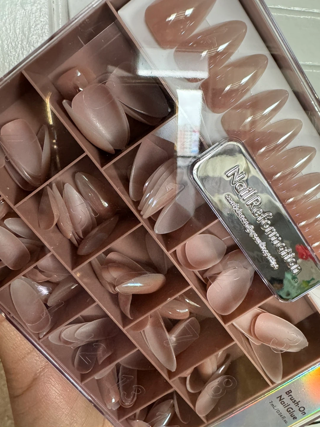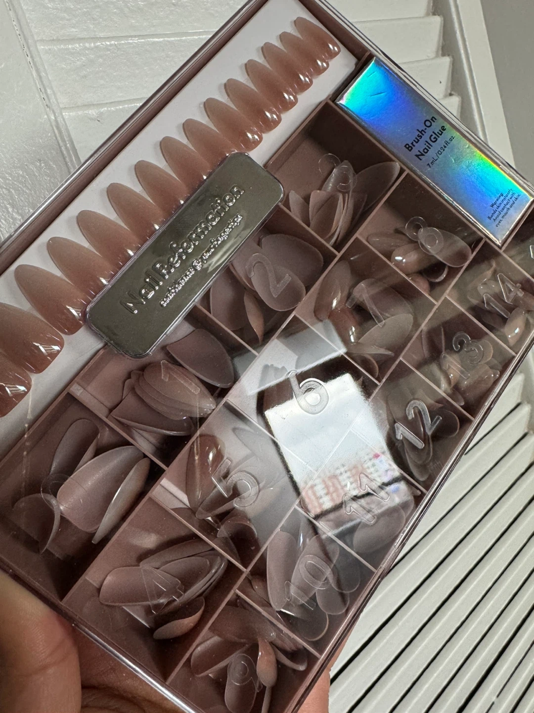 - Brush-on nail glue (7 ml/0.24 fl. oz.)