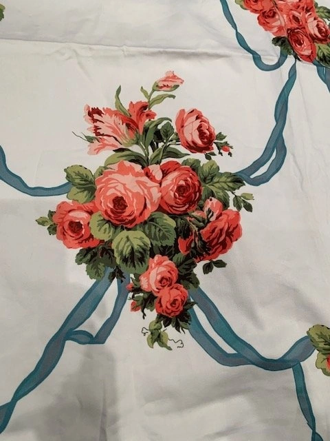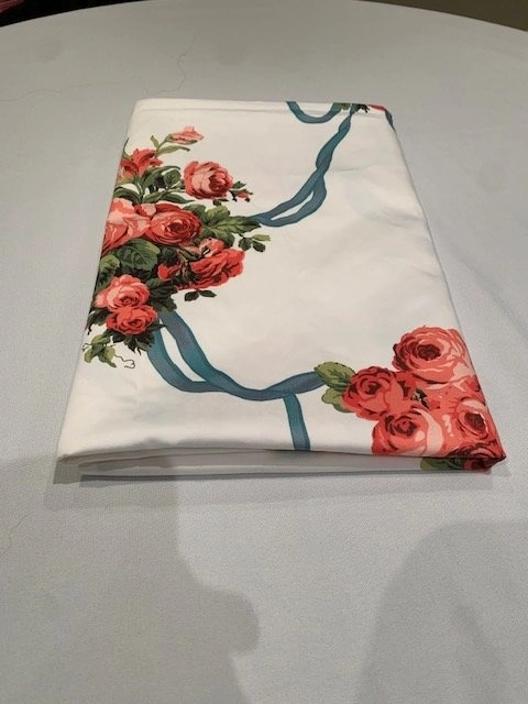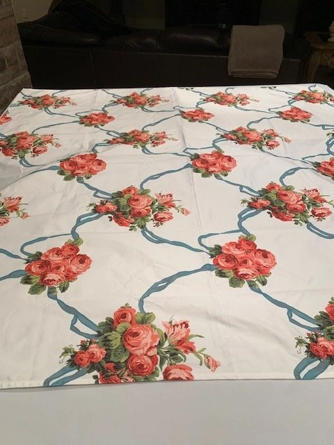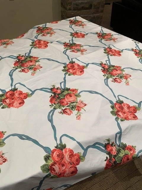 Stunning SPOONFLOWER Bespoke Custom Table Cloth. As featured in Southern Living and House Beautiful. Bespoke Climbing Roses Pattern. Size 69" x 69". Impeccable Quality. Smoke Free - Pet Free Home. Please go to SPOONFLOWER website, these are CUSTOM made bespoke table cloths that retail over $120.00 US. Located Richmond Hill - Bathurst and King RD.