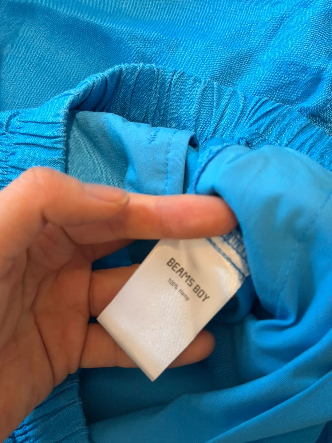 These BEAMS BOY pants are made from 100% hemp in a vibrant blue color. They feature an elastic waistband with a drawstring for a comfortable fit. The cropped length makes them perfect for warmer weather!