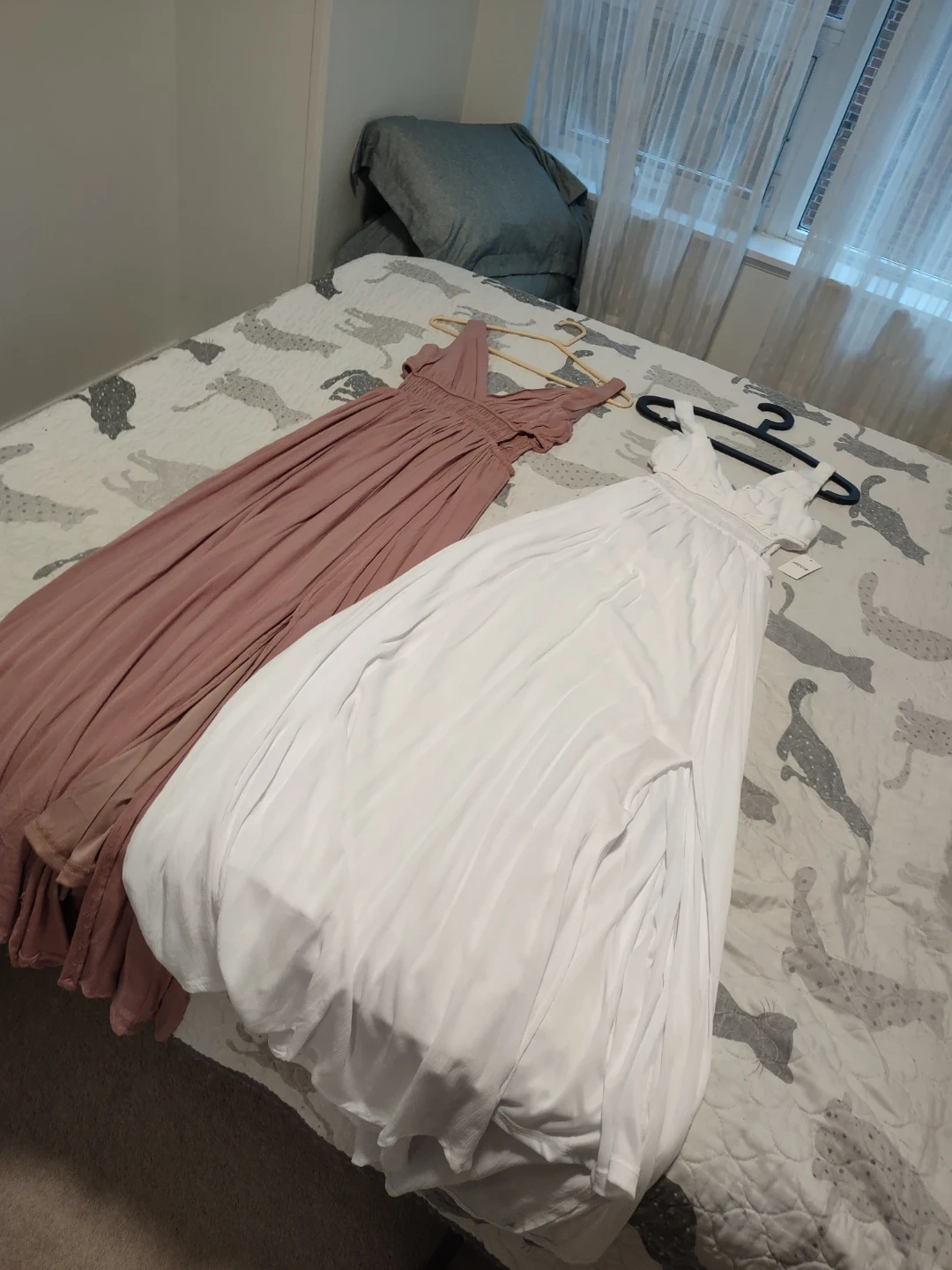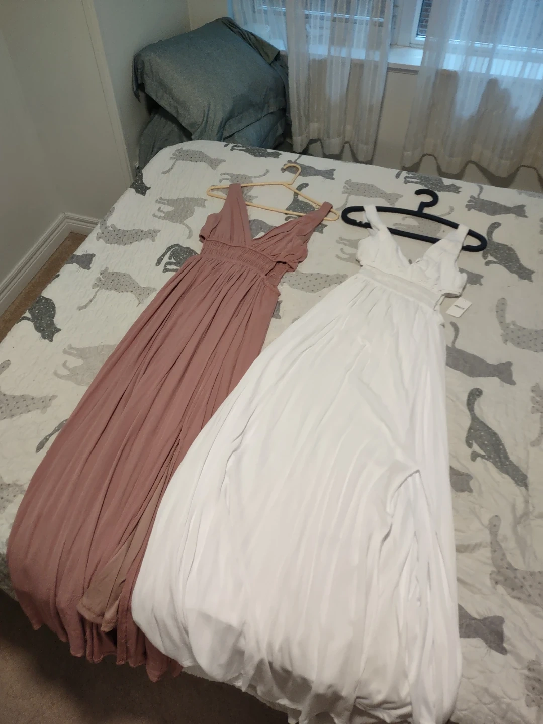 Two beautiful maxi dresses, one in a rose colour (size small) and the other in white (X-small).