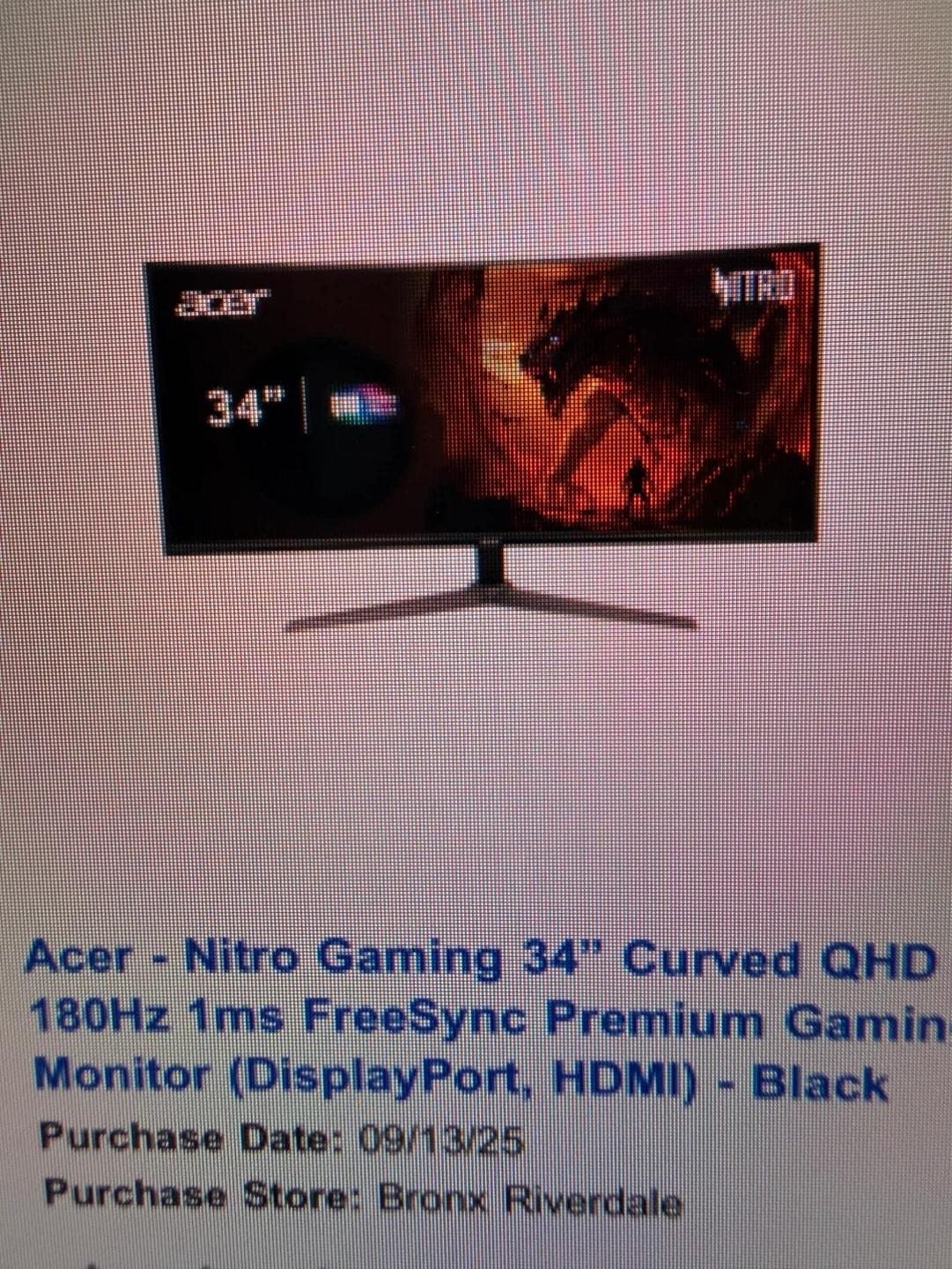 Buy & SellAcer Curved MonitorAcer Curved Monitor$290Acer curved monitor in black. It's a great addition to any setup for immersive viewing. Connects via HDMI or DisplayPort.ConditionNewBrandAcerWHERE TO MEETOgden avenue 169 streeView MapSELLERverifiedMisisHighbridge19313 reviews0 chats·1 favorites·11 viewsSEND CHAT TO SELLERHi Misis! I’m interested in your listing.Hi Misis! I’m interested in your listing.Get the Karrot app to chatSign In to chat