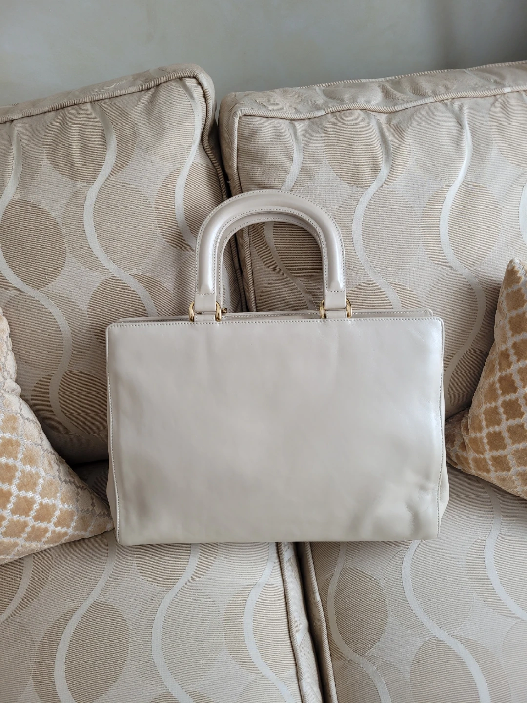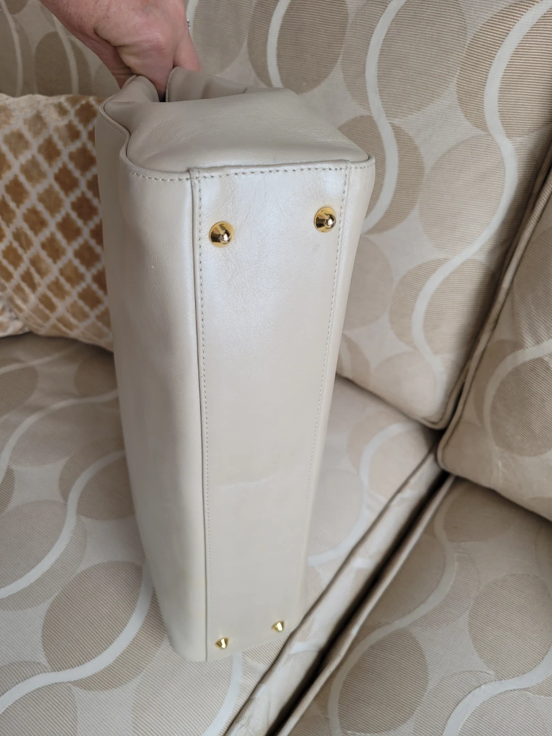 Vtg Holt Renfrew Cream Leather Top Handle Handbag