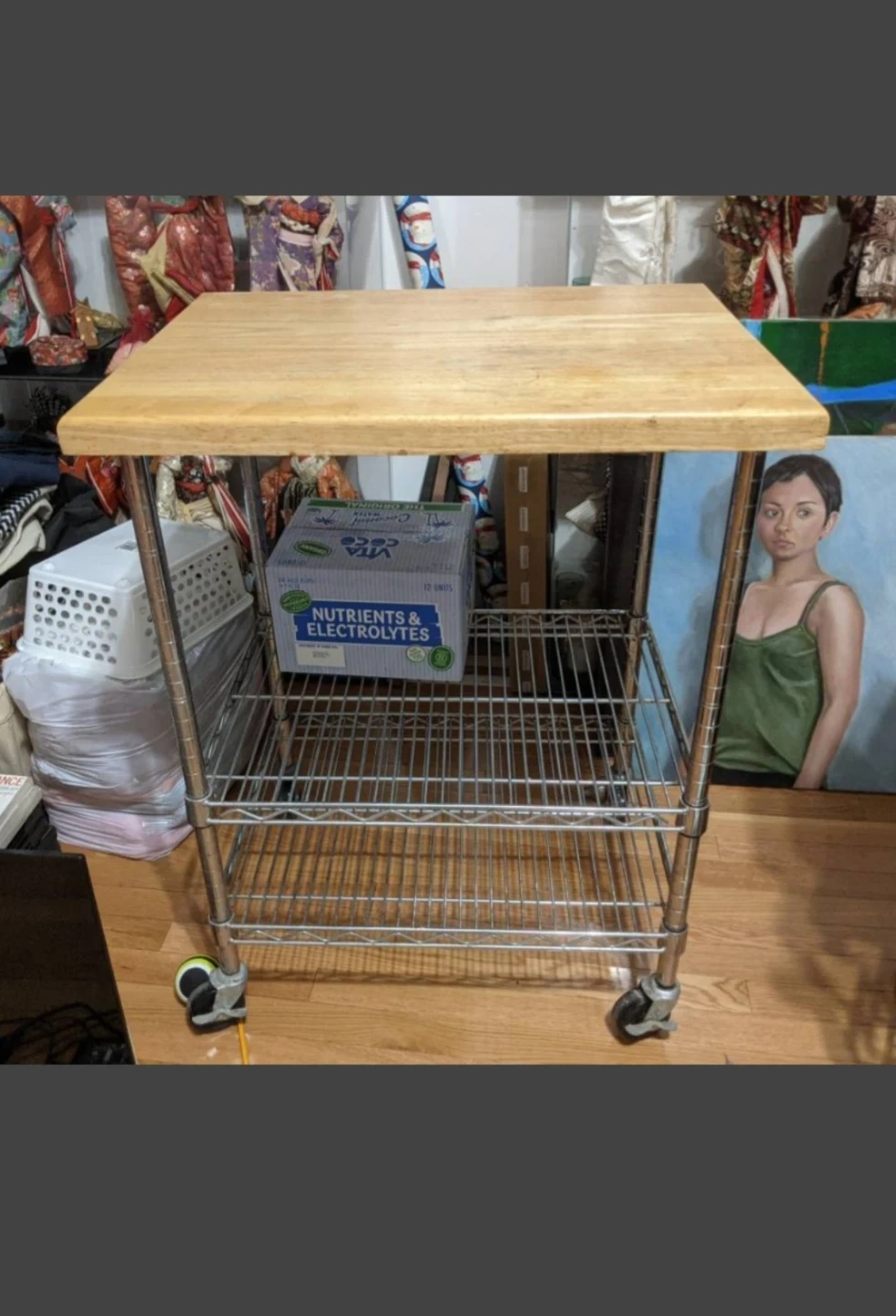 (FREE DELIVERY) Rolling Kitchen Cart with Wood Top