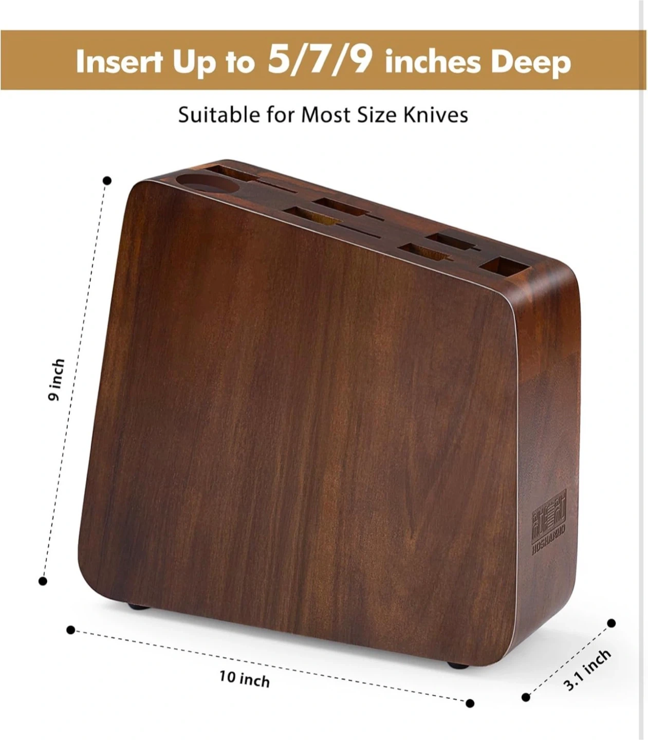 • Storage Capacity: 7 slots accommodate knives, scissors, and sharpening rods, offering organized and accessible storage.