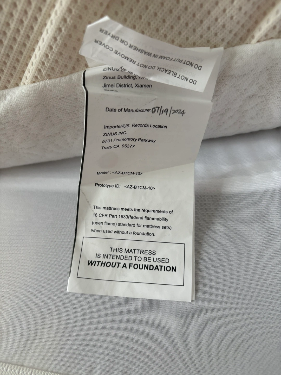 Zinus Queens size Mattress Less than 8 month use