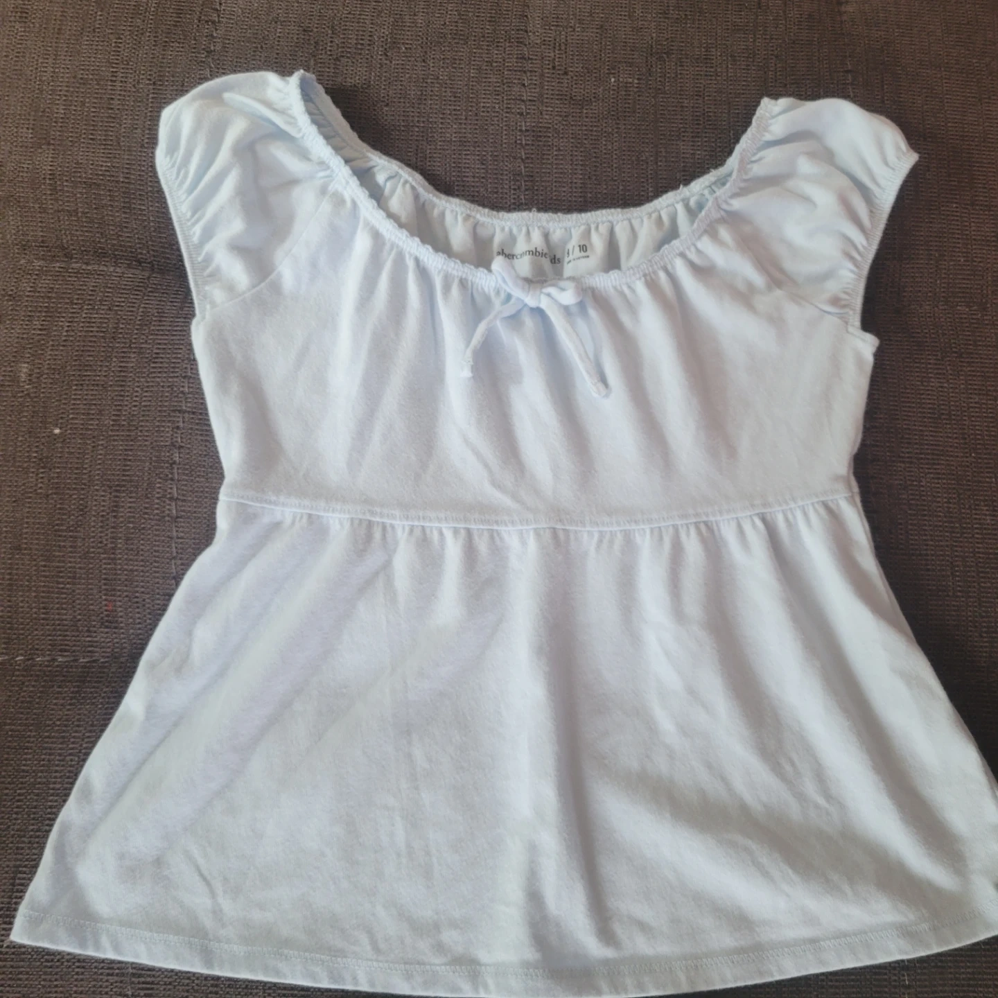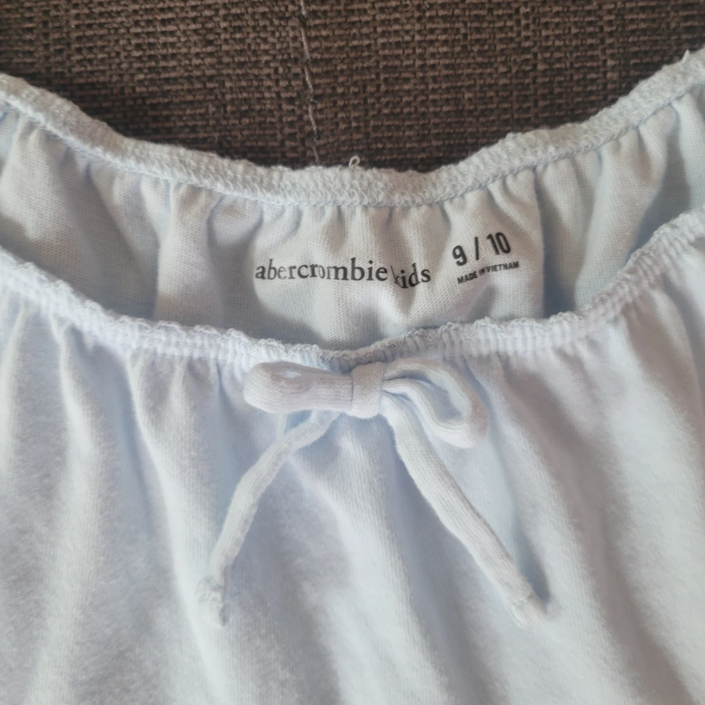 Abercrombie Kids light blue top. Size 9/10. Features a small bow detail at the neckline. Body is 60% cotton and 40% polyester. Like new, hardy wear it