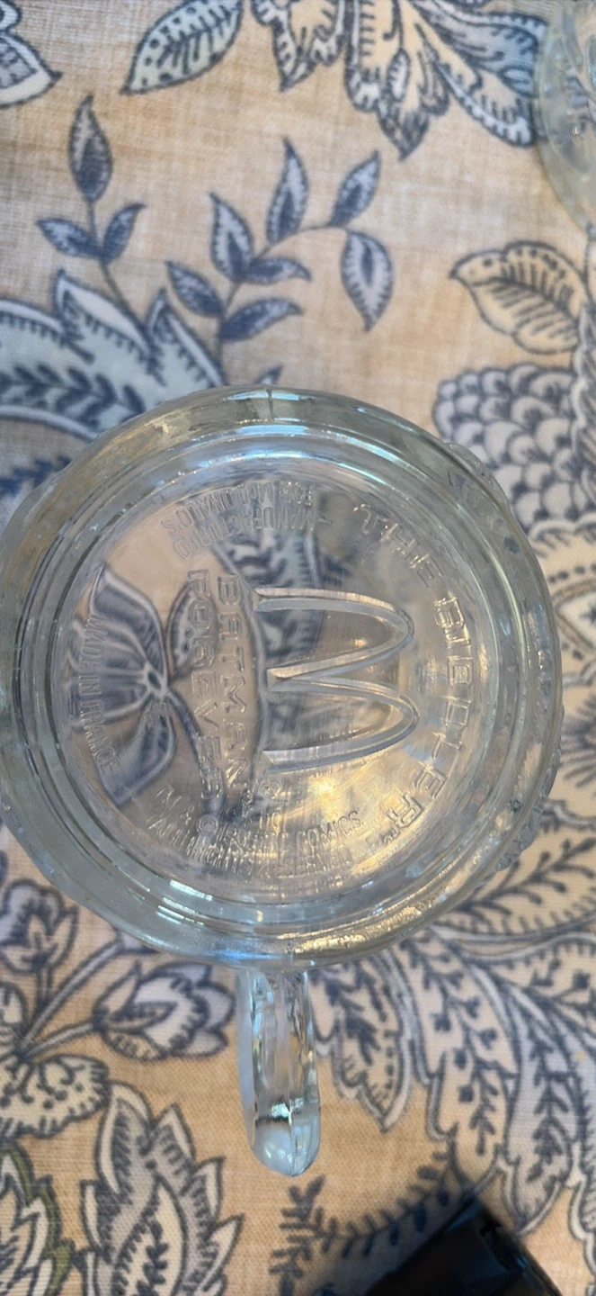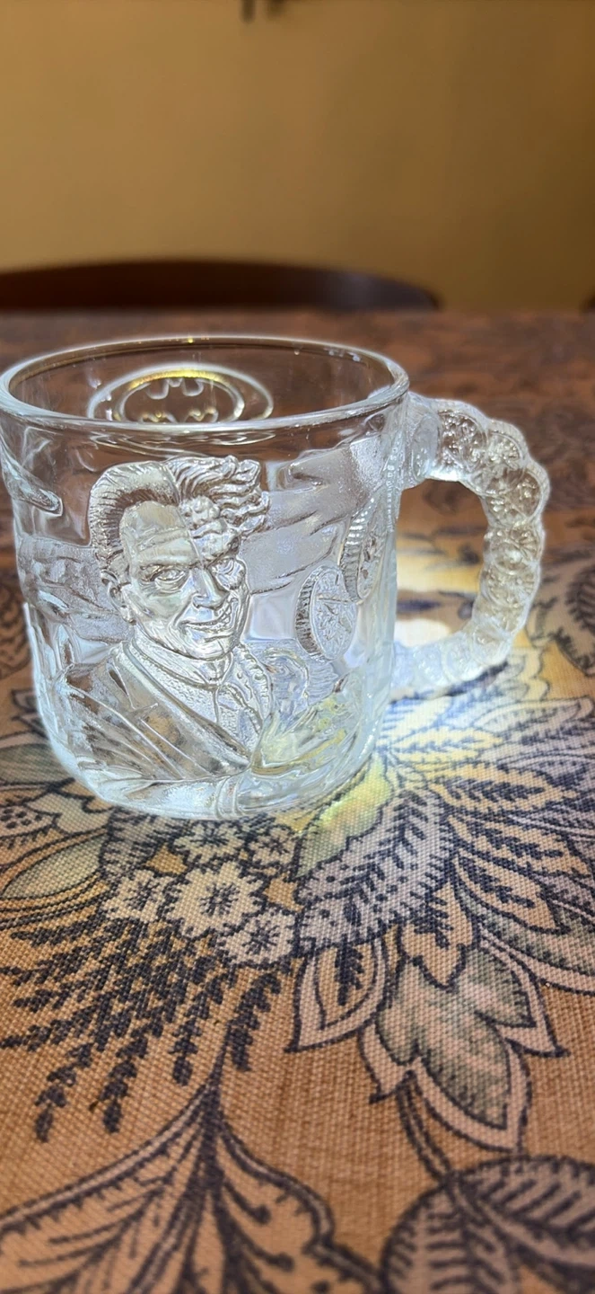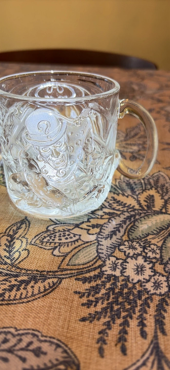 1995 Batman Forever embossed McDonalds collector glass mugs made in France. This set has all 4 characters (Batman, Robin, Riddler & Two Face) with no chips or cracks. A great collection with lots of detail. Please message if you are interested in more mugs. I have a total of 15 that I can sell for a group price.