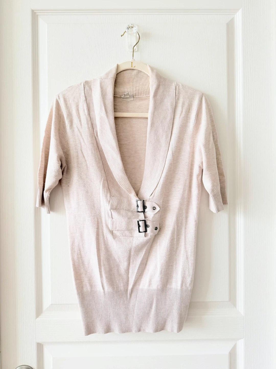 Beige Buckle Detail Top